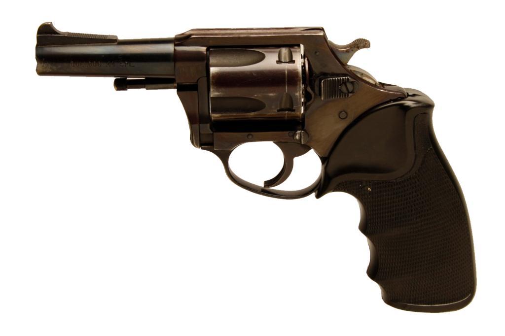 Charter Arms Bulldog Cal .44 SN:69151 Double action 5 shot revolver. Blued finish, Pachmayr rubber grip, 3" barrel, good bore and action. Condition: Very good with slight cylinder score and high point holster wear.