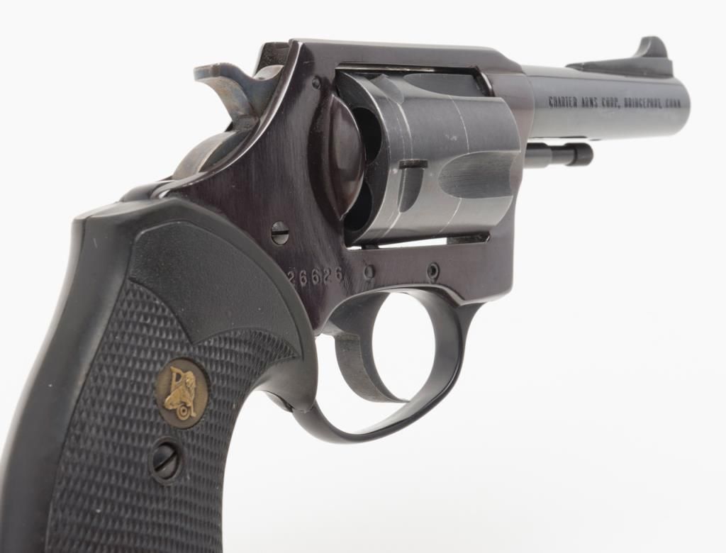 Charter Arms Bulldog revolver, .44 Special  caliber, Serial #26626.  The pistol is in overall  very good condition with a 3” barrel.  The pistol  retains nearly all of its blued finish with some  light wear at the muzzle, while the hammer andtrigger shows some residual case color.  The bore  is very good, action crisp and markings sharp on  this pistol.  (Modern/PPT).  Est.:  #175-$350.