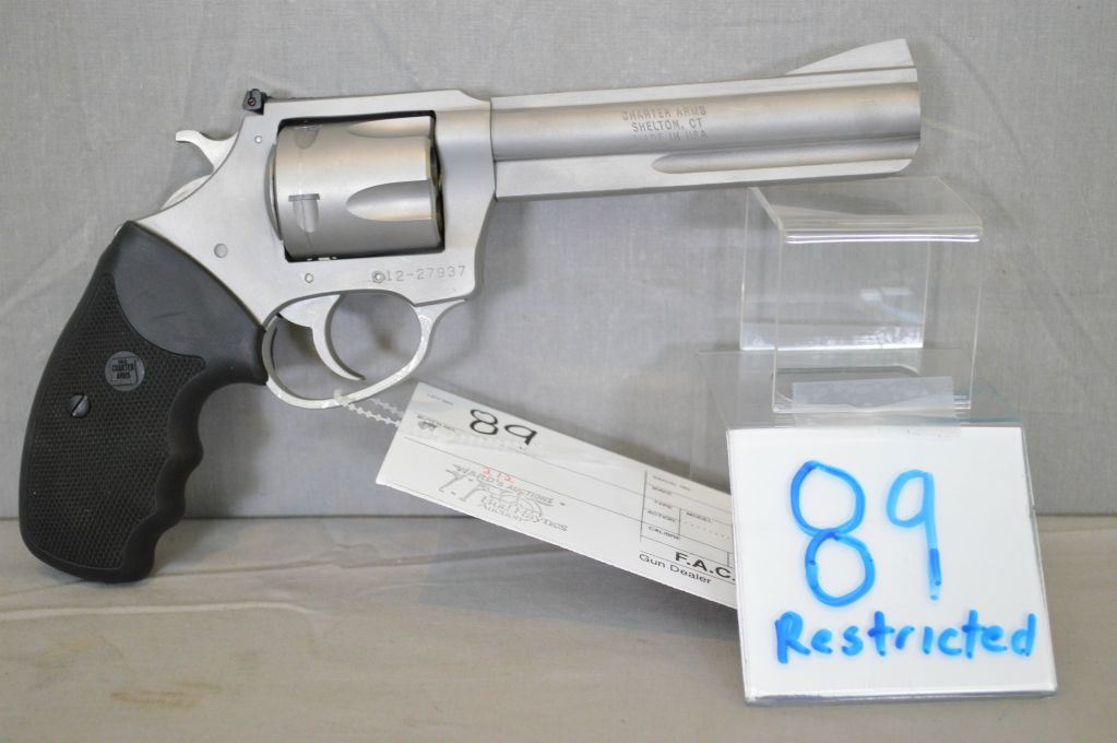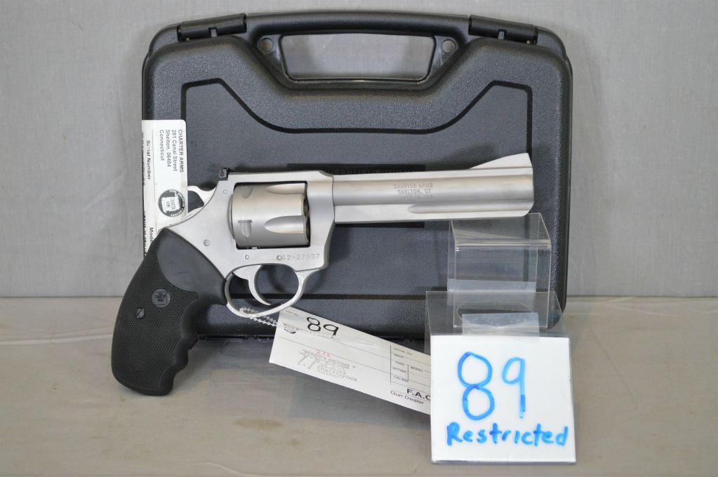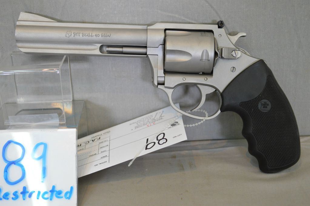 Charter Arms Mod Pit Bull .40 S & W cal 5 shot Revolver w/ 126 mm bbl [ grey stainless finish, rubber Charter Arms grips, appears excellent, test fired in orig foam lined box w/booklet ] Ser # 1227937 Restricted Cert # 17736453