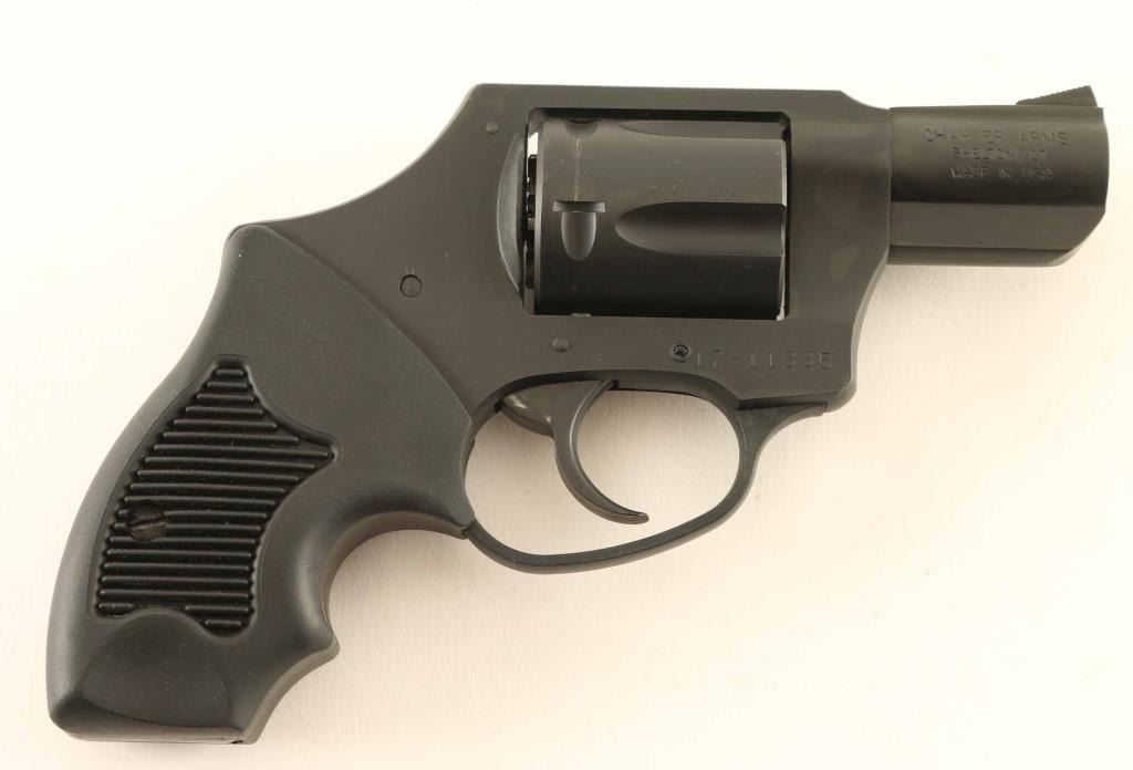 Revolver. 5-shot. Compact, lightweight (16 oz.) revolver. Matte-black finish. Black rubber grips. 2" lug barrel. Spur-less hammer. bore is good, but dirty. Cylinder chambers are excellent. Action is smooth/tight. Cylinder indexes properly. serrated trigger. Finish is about 99% , with slight tracking on cylinder. grips are excellent. Comes in original black, plastic box, with paperwork. NRA Condition-Excellent. Modern firearm.