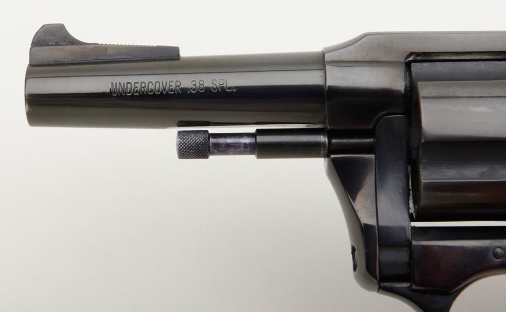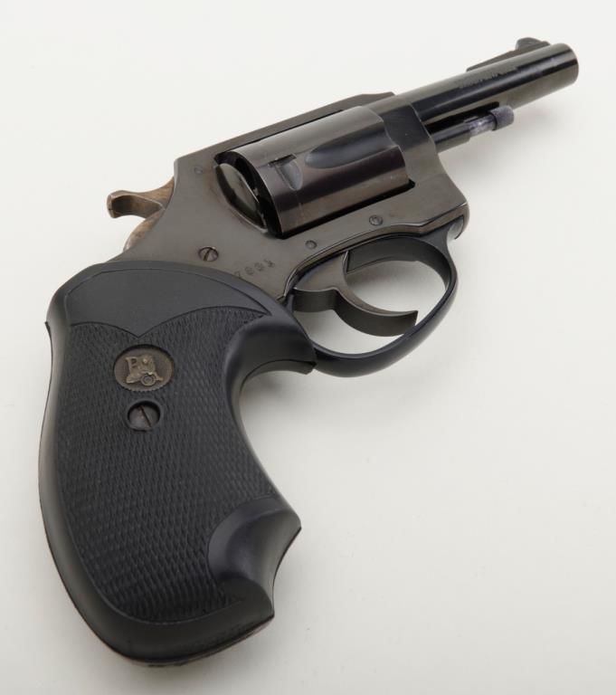 Charter Arms Undercover Model DA revolver, .38 Special cal., 3-1/4” barrel, blue finish, Pachmayr checkered hard rubber grips, #87831 in overall fine condition showing approx. 98% + original blue finish, crisp action, sharp markings, very good to fine bore, fine grips. Est.: $150-$250.