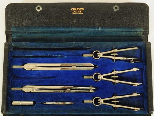 In carrying case. Largest Protractor measures 6 1/4" long.