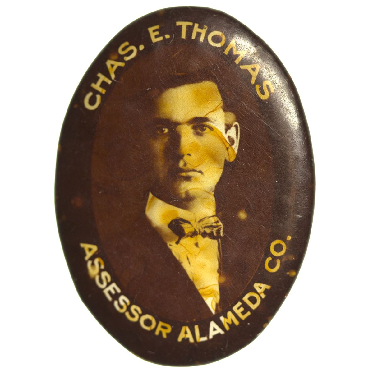 21x29mm political pin, candidate for assessor Alameda County. Weber notes "very rare!!"