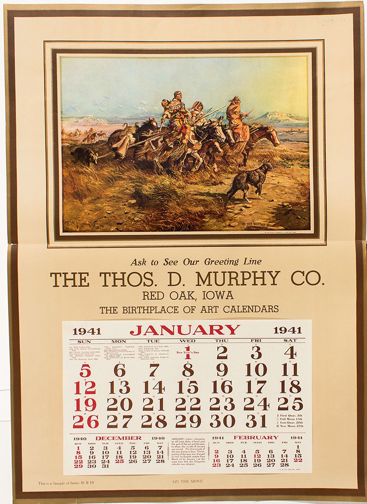 c1941 This is a 1941 calendar from Thomas D. Murphy Co. It has a Charles Russell print "On the Move." Beautiful. - HKA#65938
