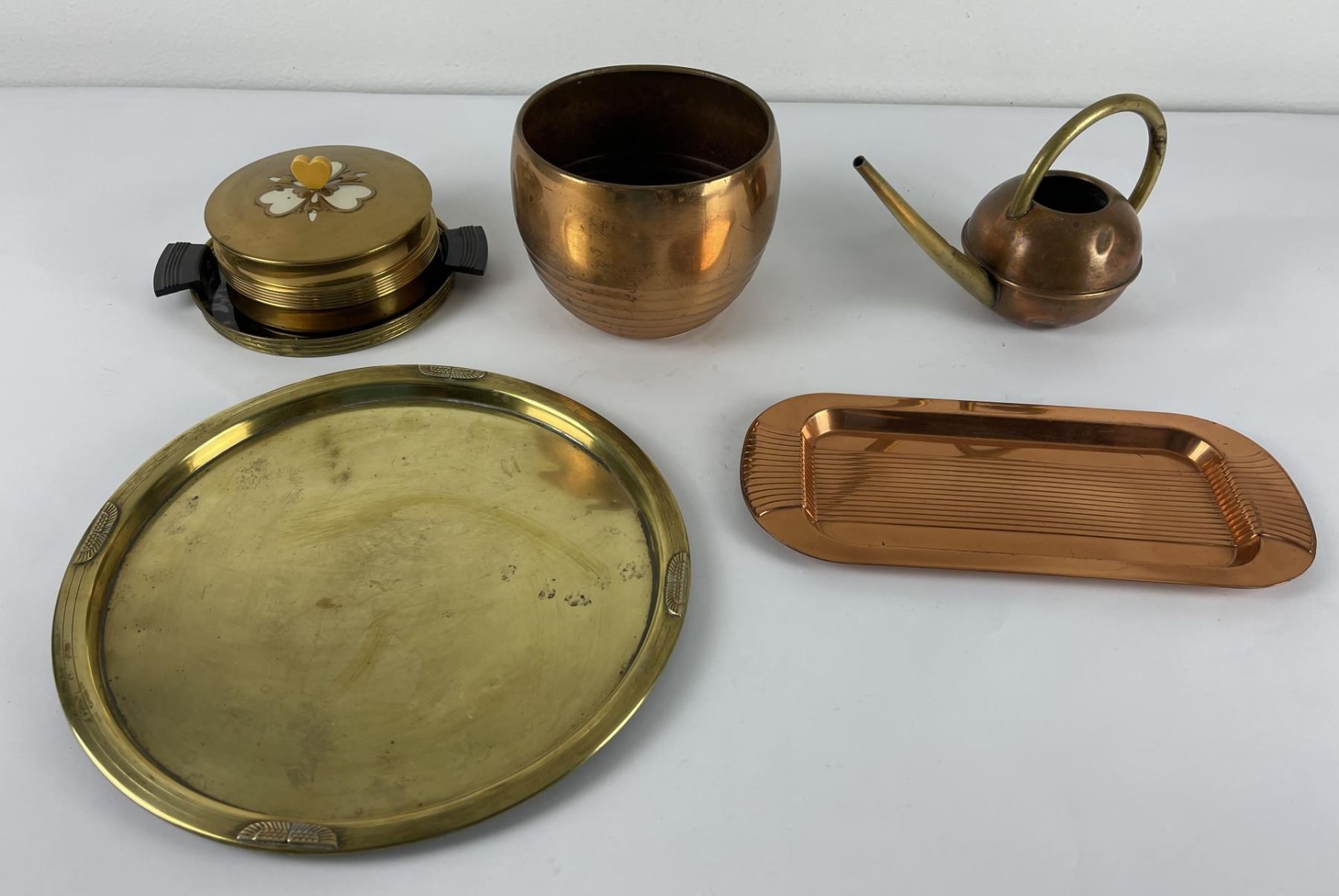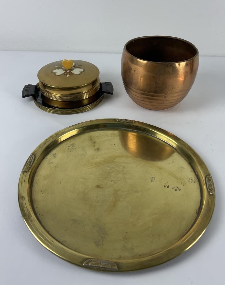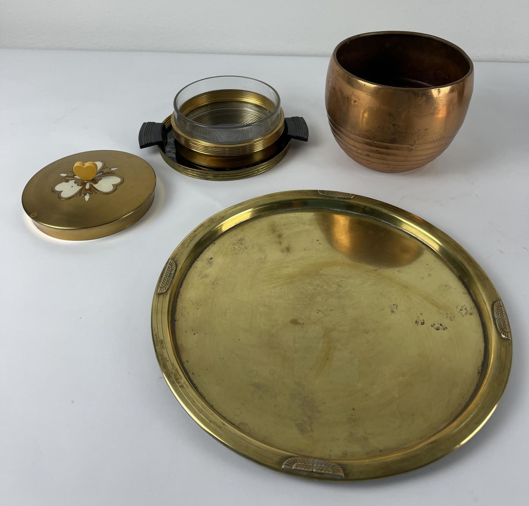 4 Pieces are Chase, the brass Egyptian revival tray is Benedict Brass.