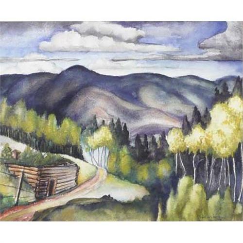 8131 Chase Varney, Watercolor Log Cabin Signed lower right 11 1/2" x 13 1/2"