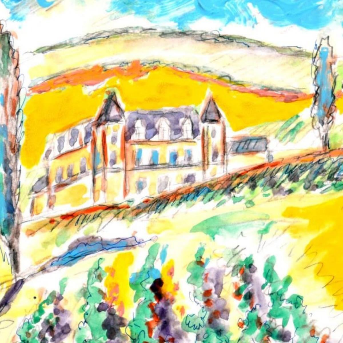 Chateau Clos de Vougeot, Burgundy by Ensrud Original. "Chateau Clos de Vougeot, Burgundy" is an original Mixed Media on Board by Wayne Ensrud. The piece is hand signed by the artist and comes with a Certificate of Authenticity. Measures approximately 10" x 10".