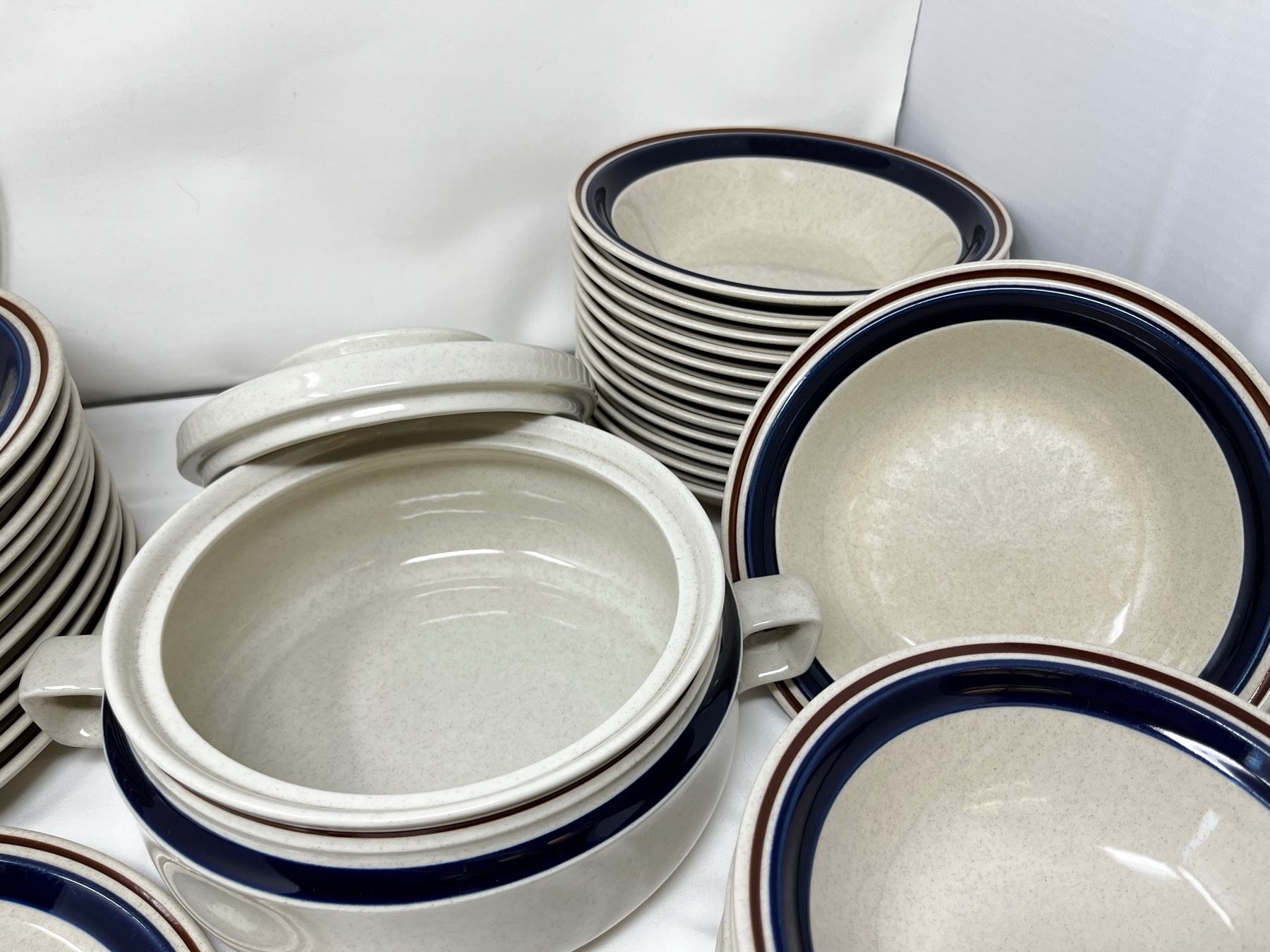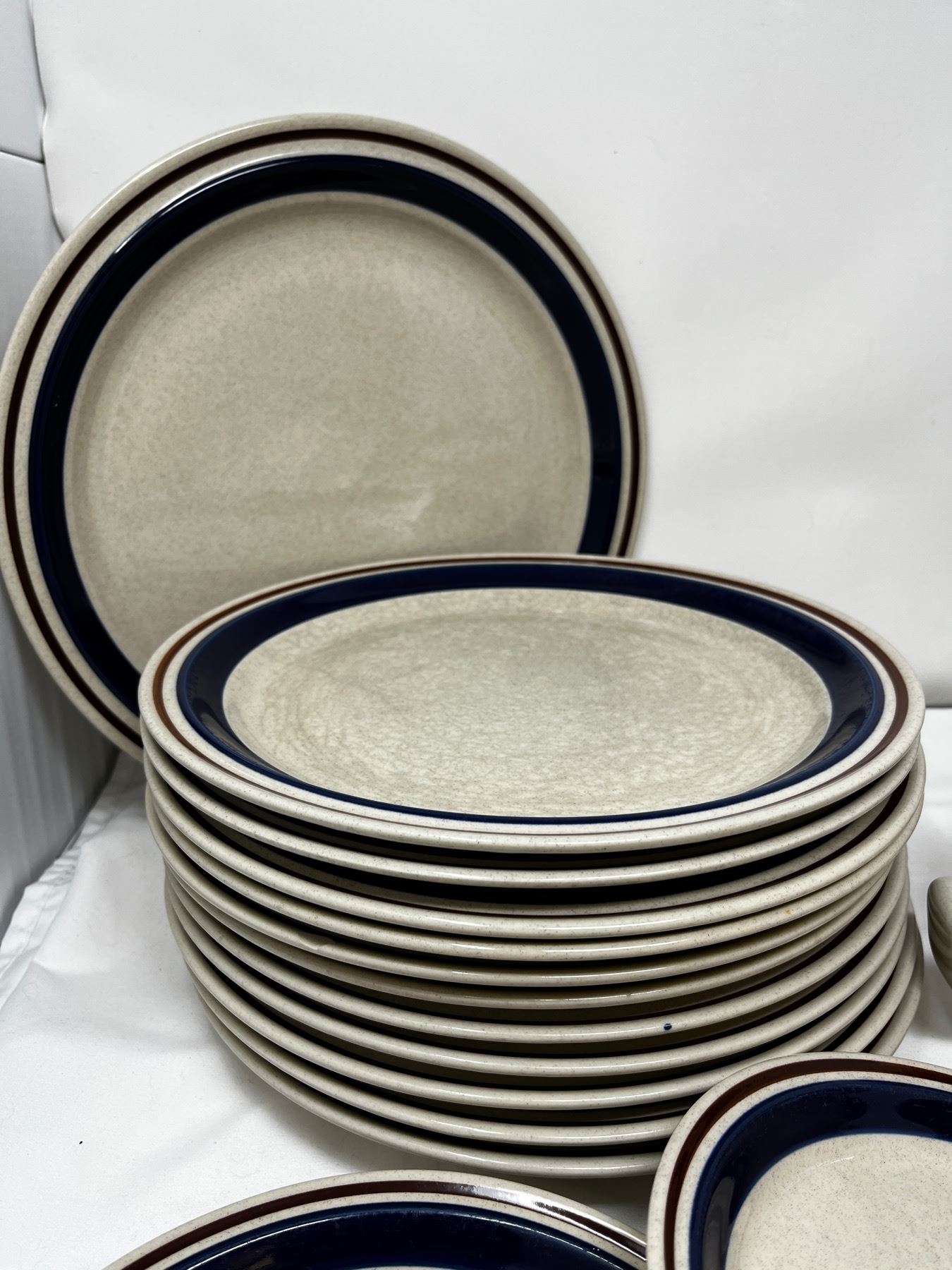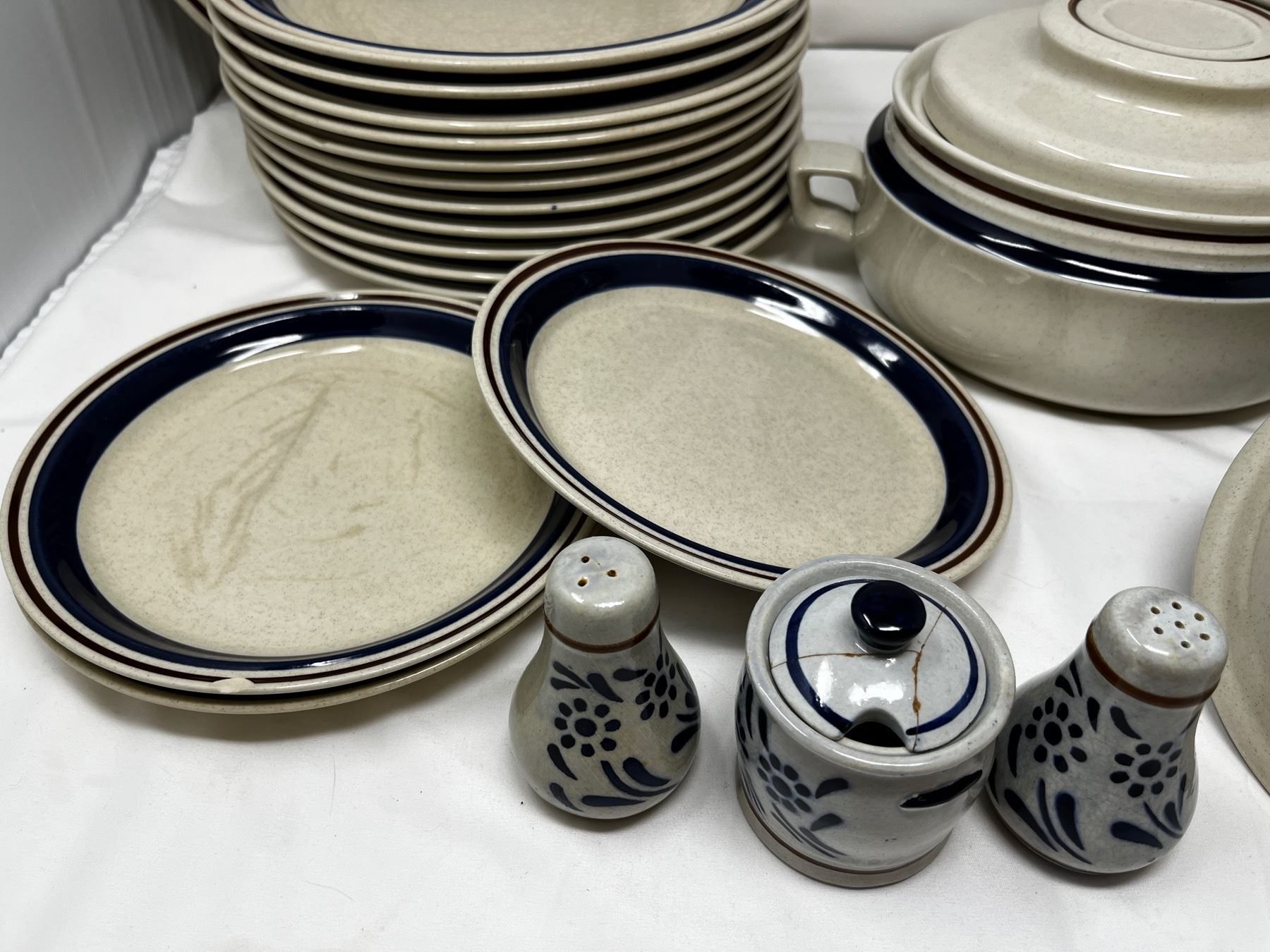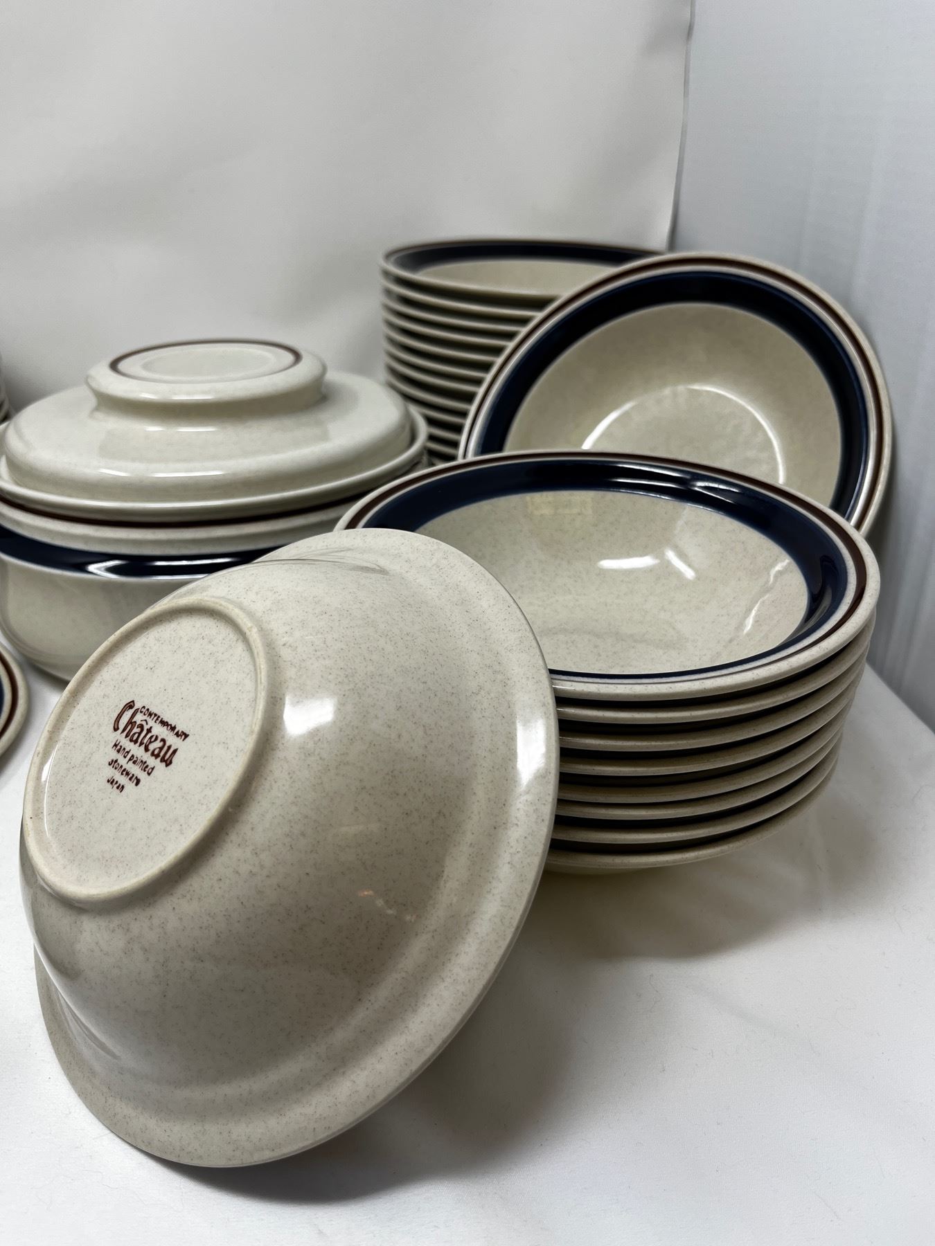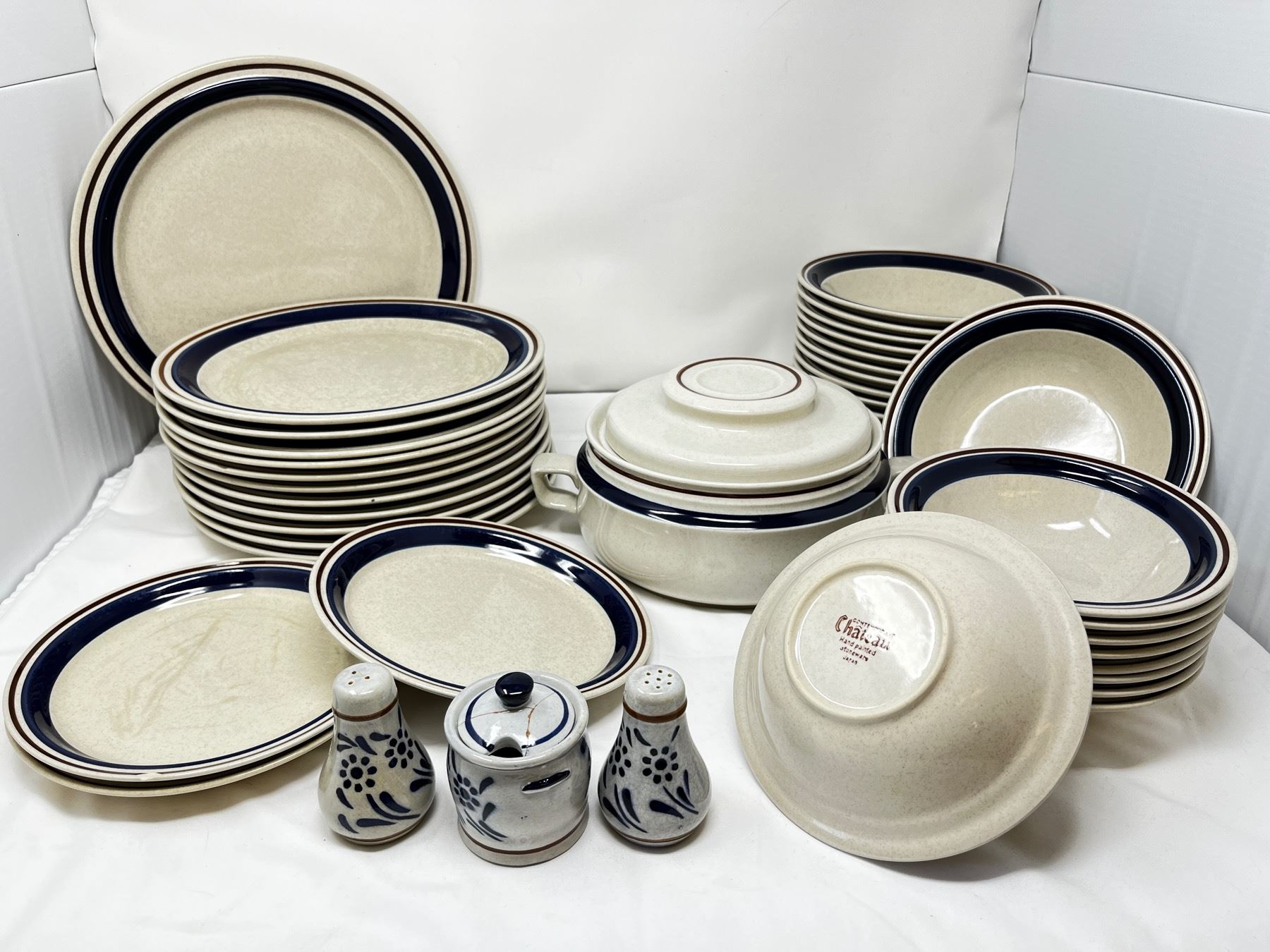 Made in japan by contemporary chateau blue and red stoneware set sugar bowl cracked lid.