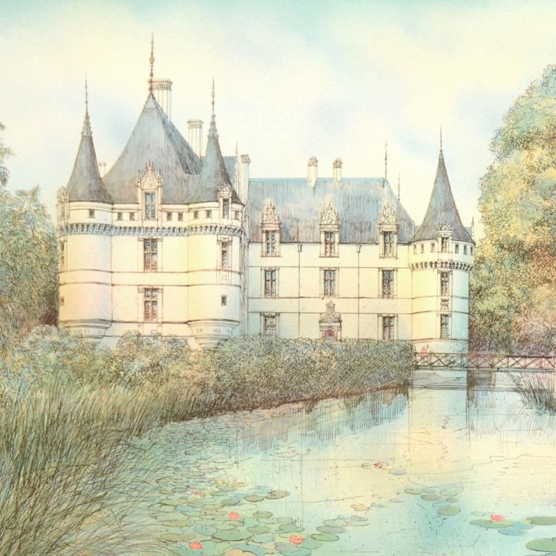 "Chateau II" is a limited edition lithograph on paper by Rolf Rafflewski, numbered and hand signed by the artist! Measures approx. 29.5" x 21" (border). 27" x 19" (image).