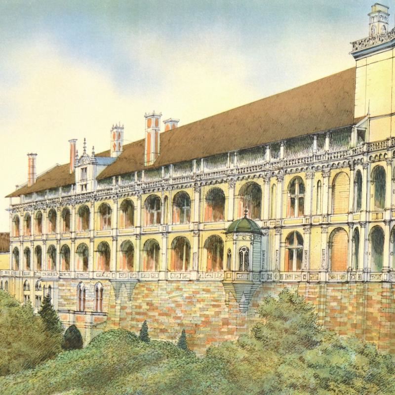 "Chateau" is a limited edition lithograph on paper by Rolf Rafflewski, numbered and hand signed by the artist! Measures approx. 29.5" x 21" (border). 27" x 19" (image).