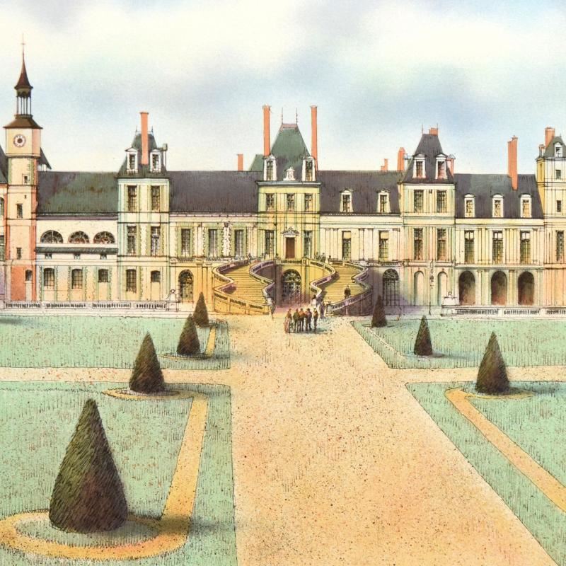 "Chateau de Fontainebleau" is a limited edition lithograph on paper by Rolf Rafflewski, numbered and hand signed by the artist! Measures approx. 29.5" x 21" (border). 27" x 19" (image).