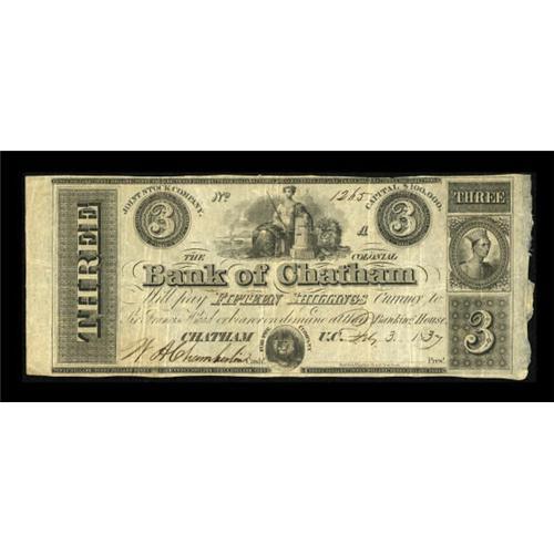 Chatham, UC- The Bank of Chatham $3 Feb. 3, 1837