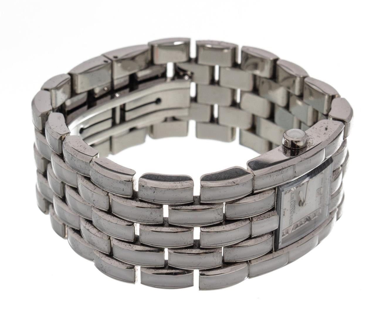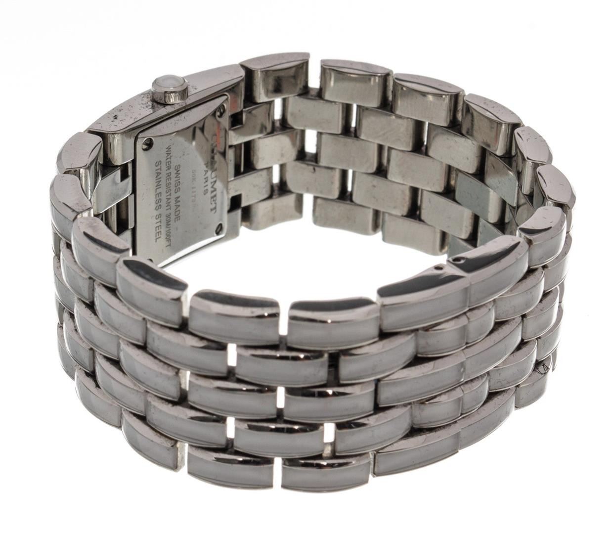 One Chaumet White Khesis Quartz Watch. Item is sold AS-IS. All available information is listed in the description and shown in the photo. Chaumet White Khesis Quartz Watch with silver-tone hardware.
