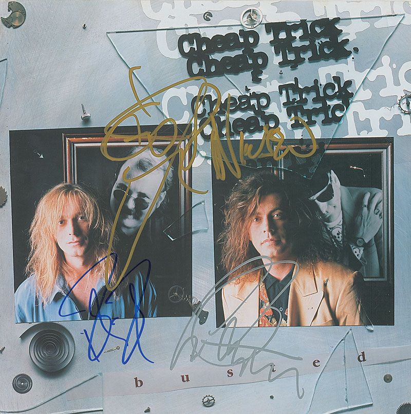 Busted album flat signed in various inks by Rick Nielsen, Robin Zander, and Tom Petersson. In fine condition.