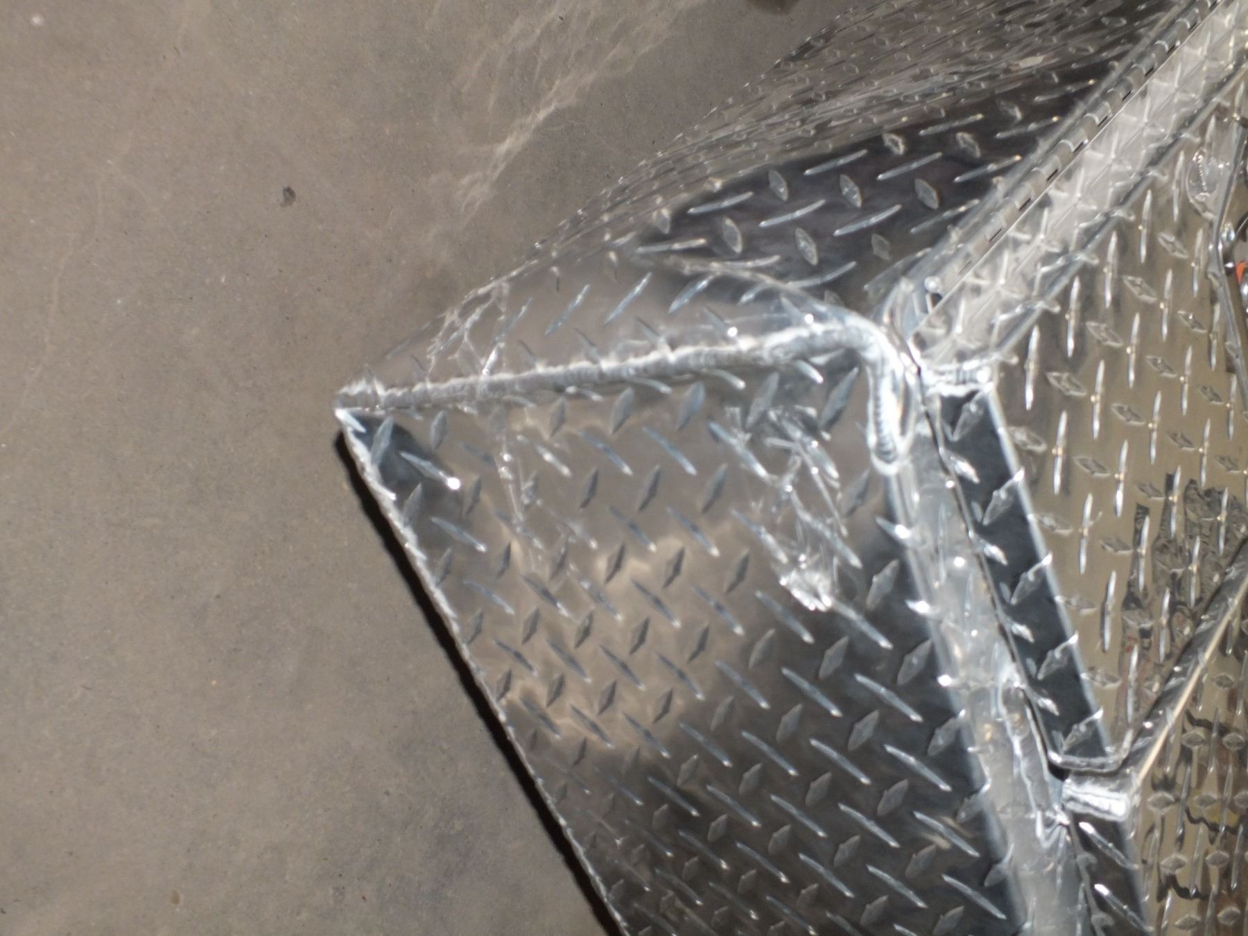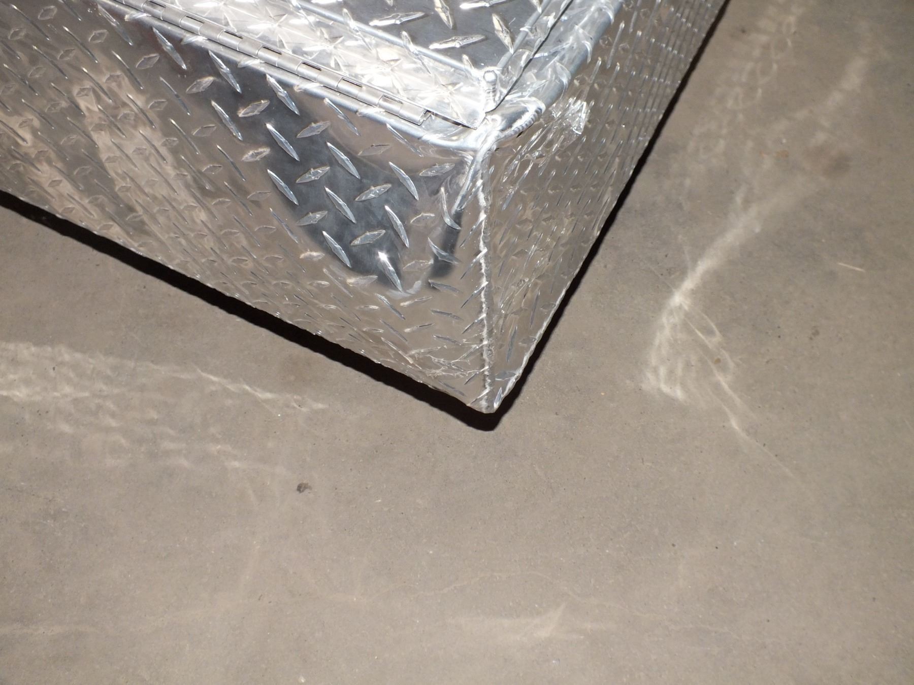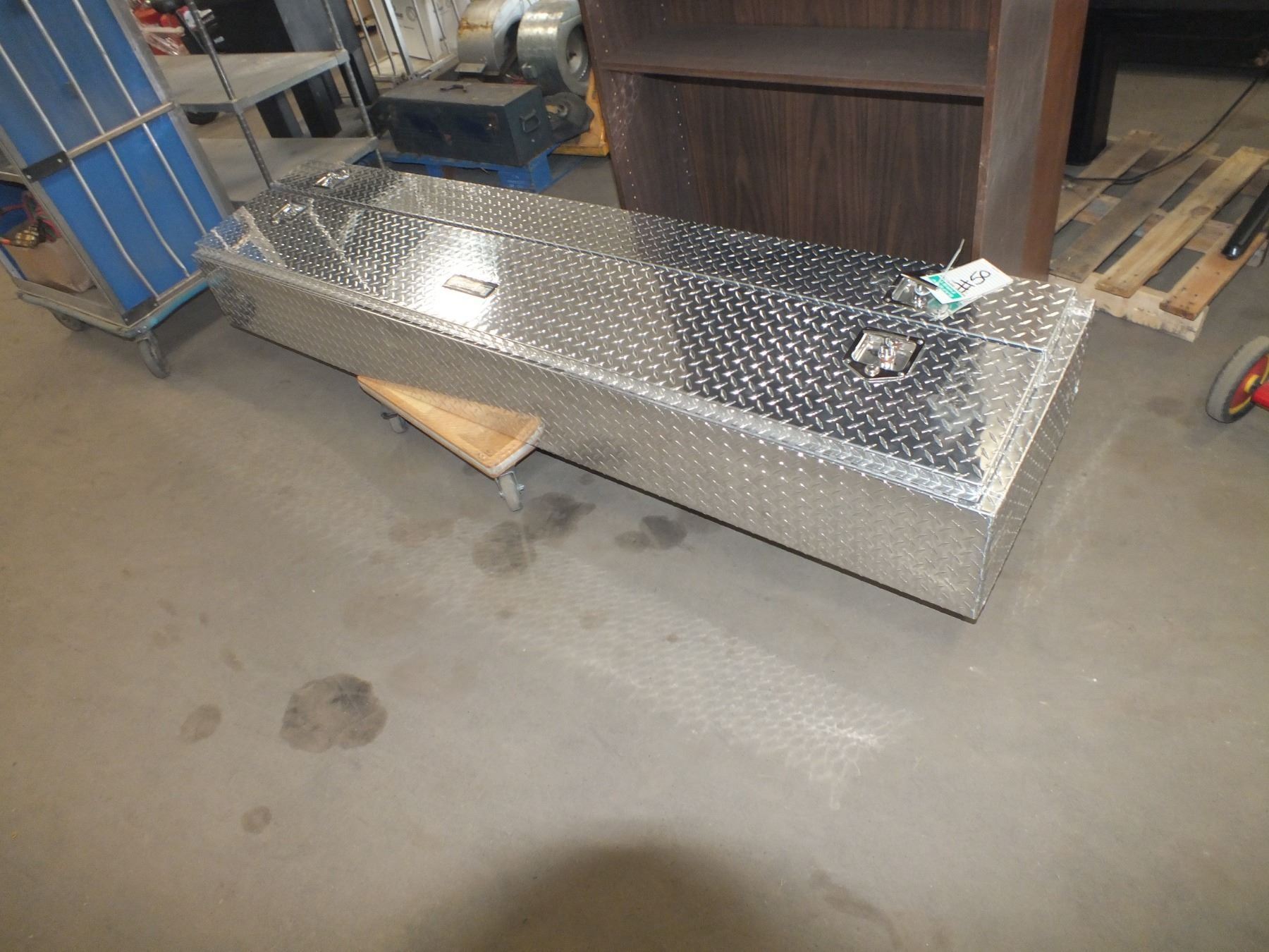 Checker Plate Job Box, w/ keys, some damage as seen in the photos, 95"l 21"w 13"h...like new