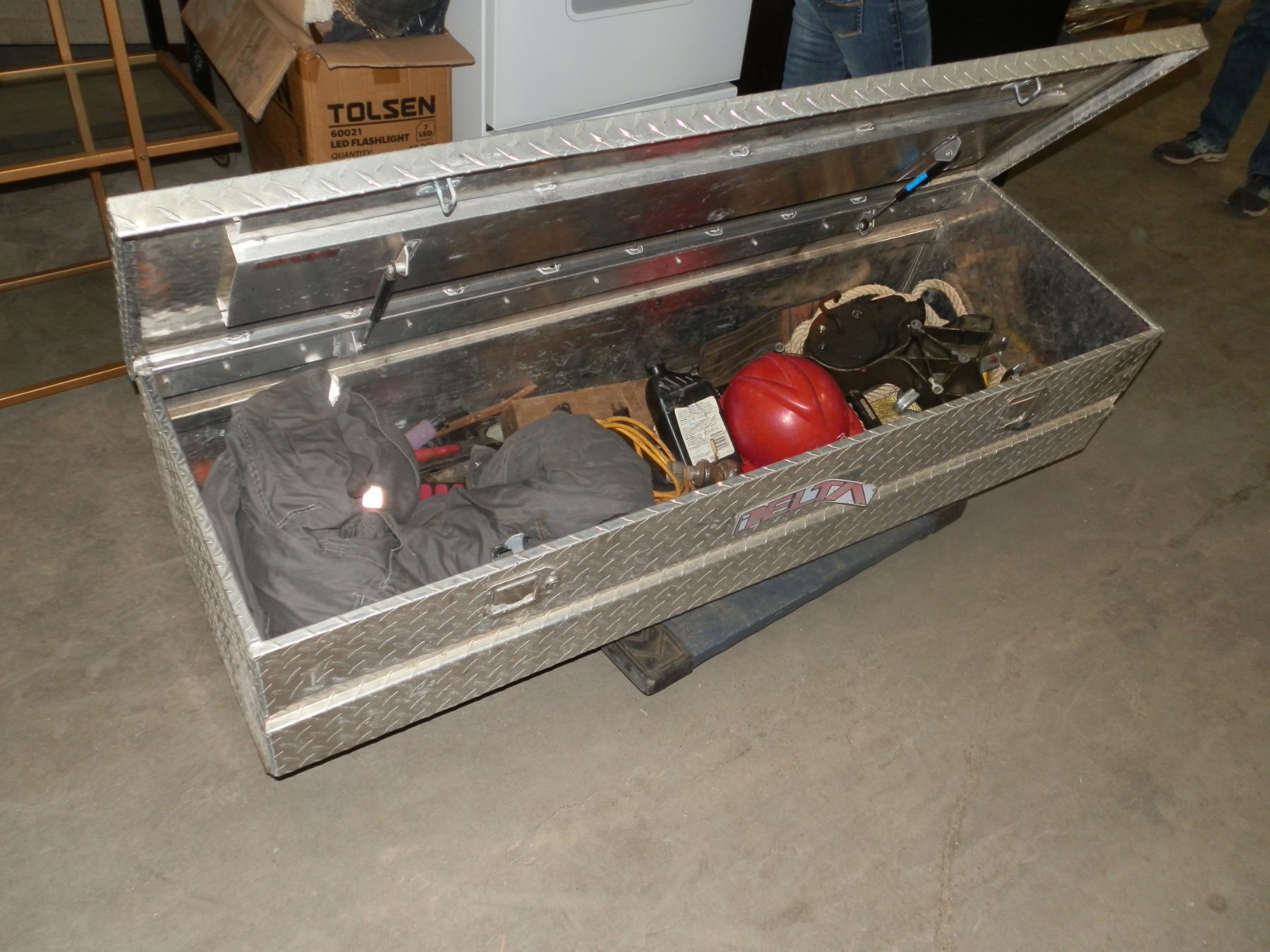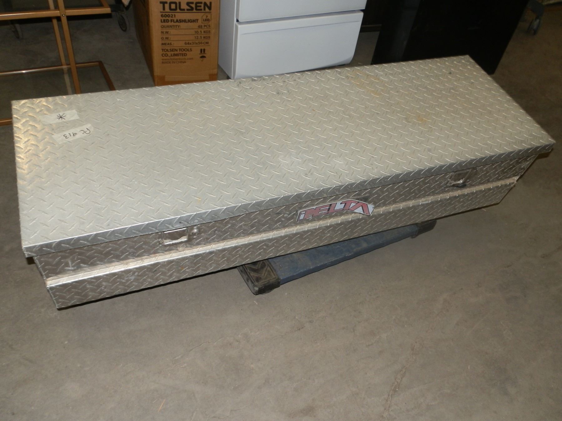 Checker Plate Tool Box with goodies inside...No Keys...Used