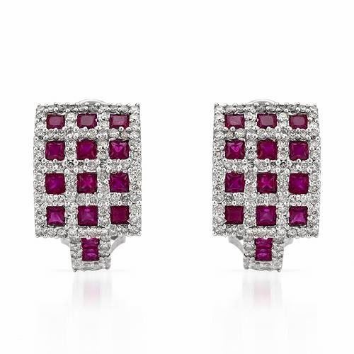 Checkered Ruby/Diamond Earrings in 14K White Gold | 288629 Grams, featuring 1.52 Ruby ct 188 2.39 ct 28 ct 14 ct