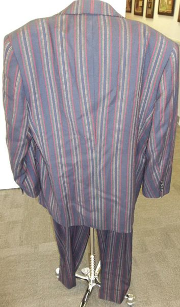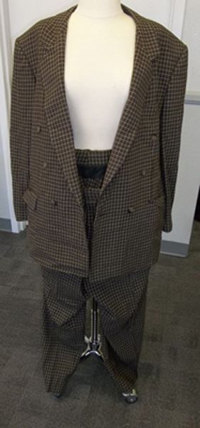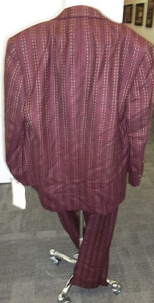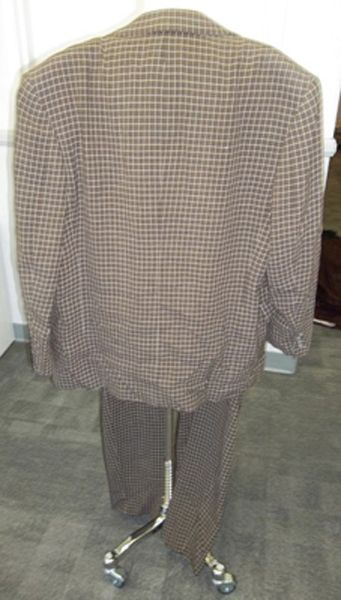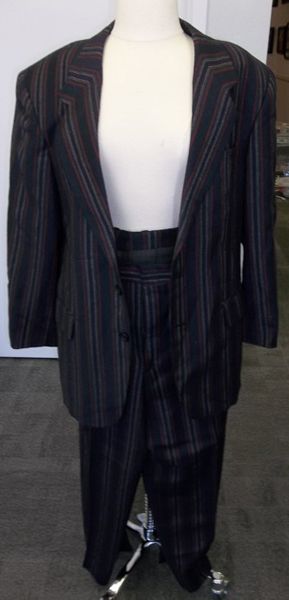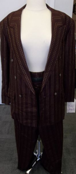 Four suits worn by "Nash Bridges" star Cheech Marin in numerous episodes of the hit series. Two suits are burgundy, one is blue and the other brown. This item comes with a certificate of authenticity guaranteed for the life of the piece.