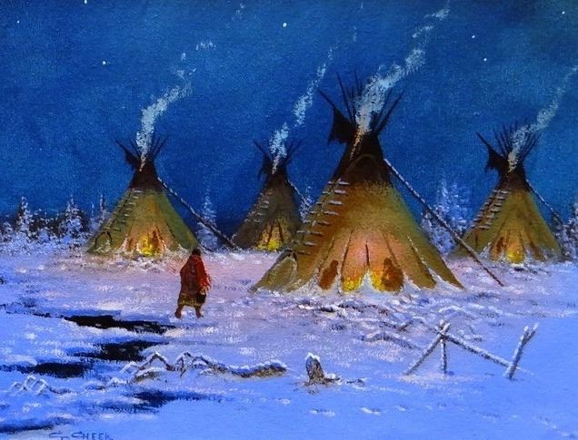 Cheek, C. R. (1937-2019) oil, Carrying Water in Winter Camp, 11" x 14"