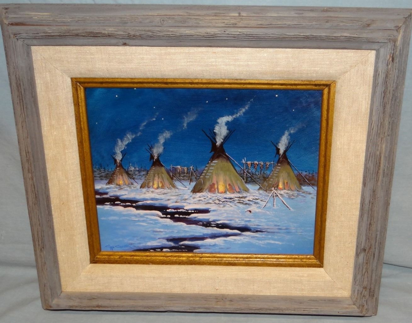 Cheek, C. R., (1937- ) oil, Indian Winter Camp, 12" x 14",