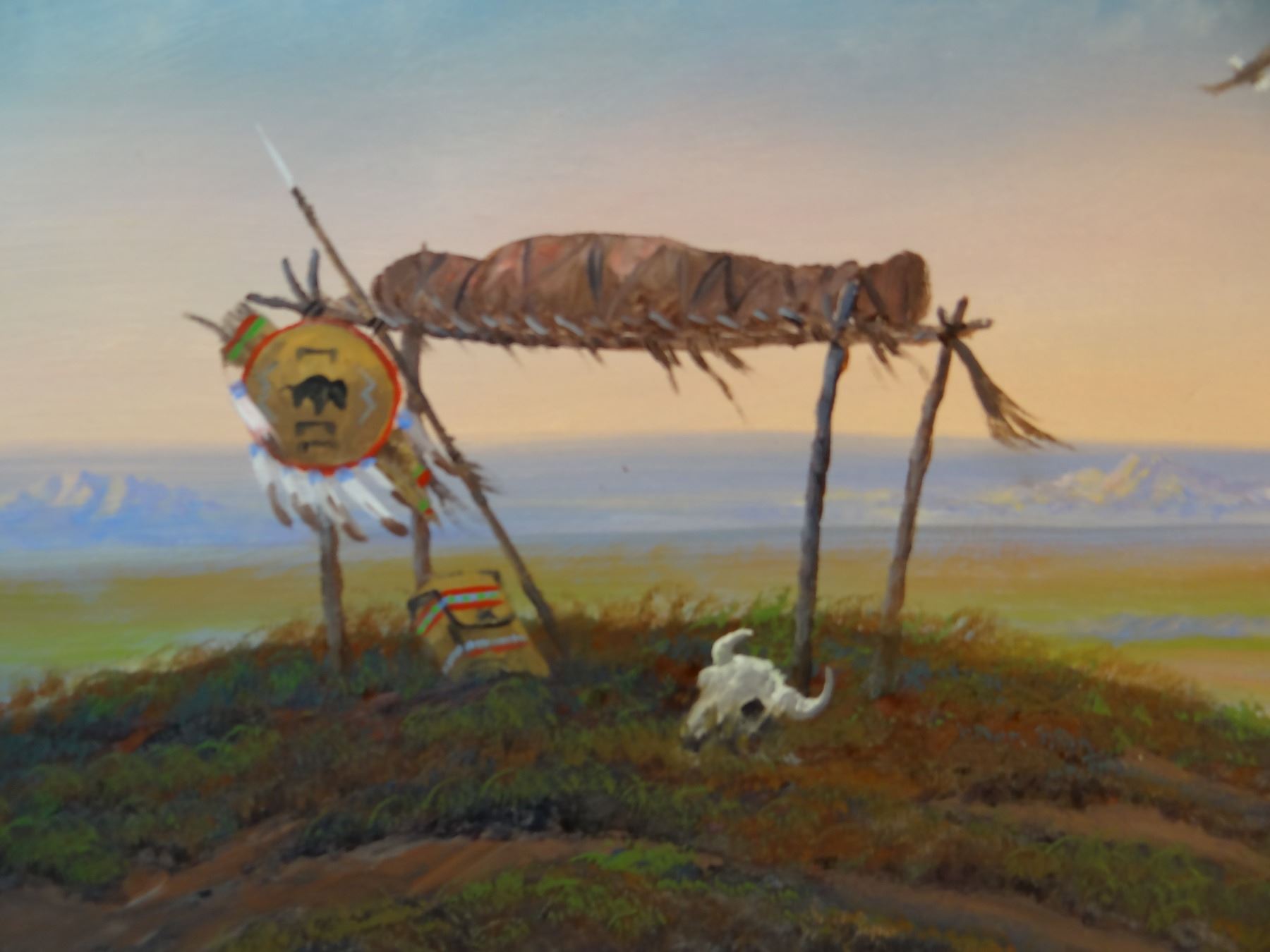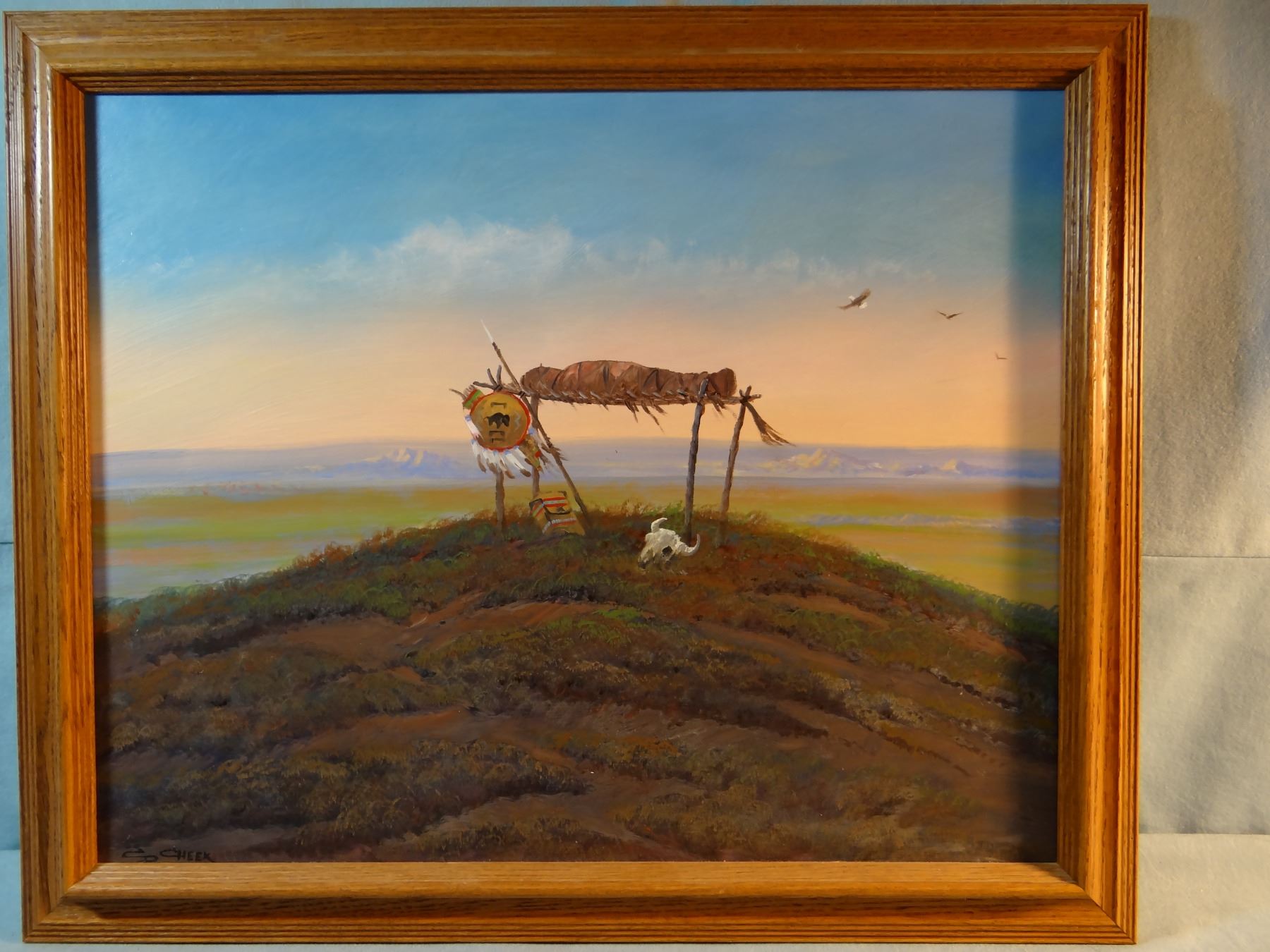 Cheek, C. R. oil, Northern Plains Warrior Burial, 16" x 20"