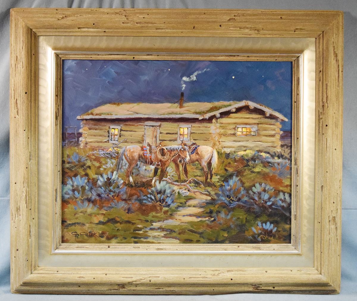 Cheek, C.R., original oil on canvas, Visitors, 16" x 20", framed, signed lower left