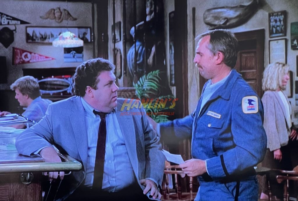 Original mail carrier jacket with patches used by "Cliff", played by John Ratzenberger in the sitcom television series 'Cheers' (1982-1993), that ran on NBC from September 30, 1982, to May 20, 1993, with a total of 275 half-hour episodes across eleven seasons.