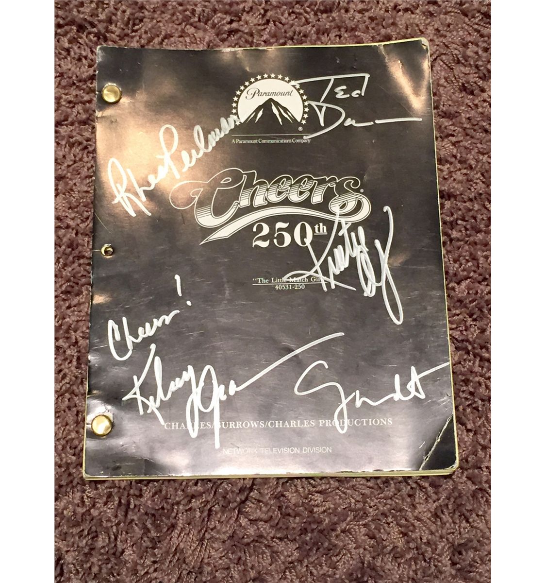 "Cheers" 250th Episode Cast Signed Script including: George Wendt, Kristie Alley, Kelsey Grammer, Rhea Pearlman and Ted Danson