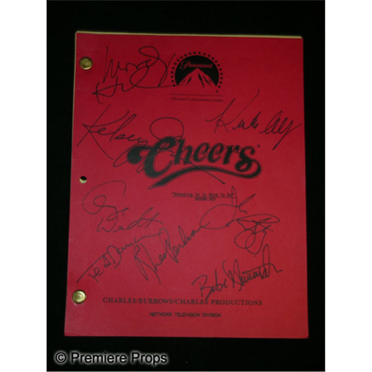 From the hit series “Cheers” comes this original production script, autographed by the entire cast! The script, entitled “Breaking in is Hard to do” is from the series 9th season, episode 8. The cover of the script has been autographed by series stars Ted Deanson (Sam), Rhea Perlman (Carla), John Rtzenberger (Cliff), George Wendt (Norm), Kelsyer Grammer (Fraiser), Woody Harrelson (Woody), Kirstie Alley (Rebecca) and Bebe Neworth (Fraisers Wife). This is one of the hardest casts to put together on one piece… Woody Harrelson doesn’t sign autographs anymore! Obtained directly from a crew member who worked on the series.