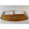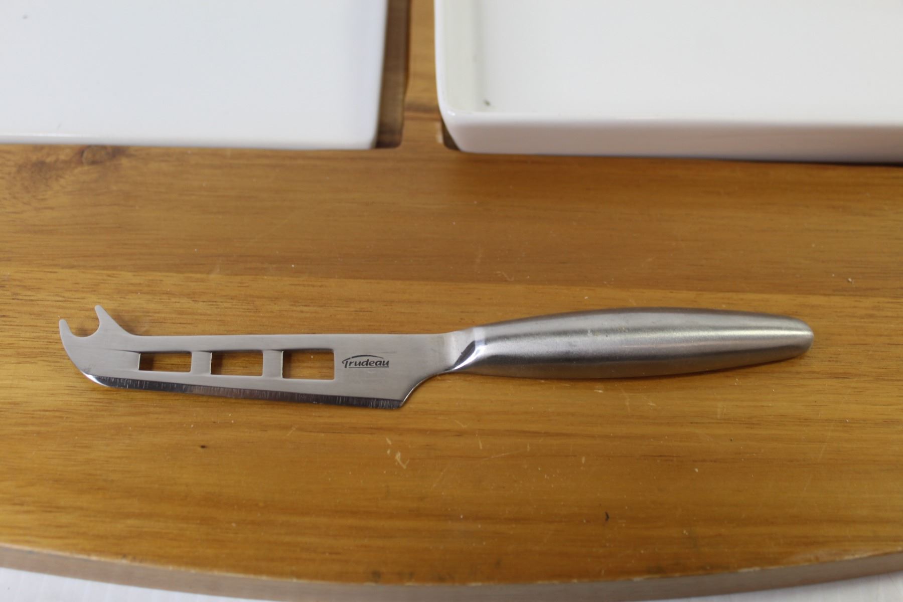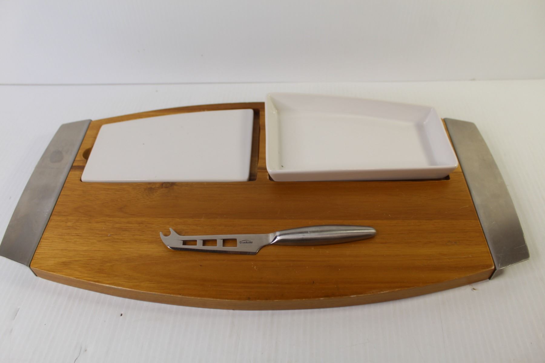 Cheese Board w/ Metal Handles and Ceramic Dish & Cheese Knife