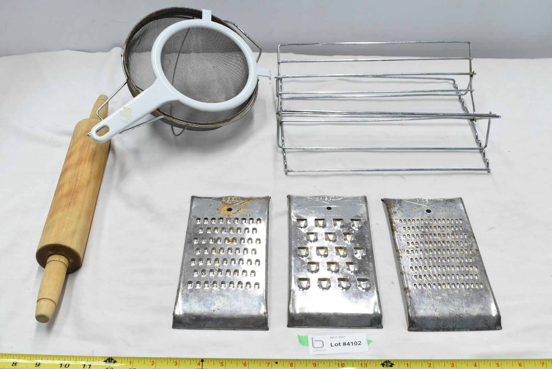 Cheese Grater, Sifters, Rolling Pin & Folding Drying Rack