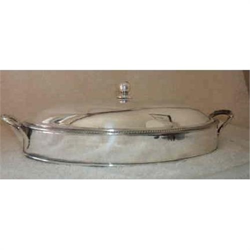 An extremely rare and desirable late Victorian cheesewarmer/server. A small flanged lid allows boiling water to be poured into and under the base to heat the inside. The lid removes completely so that one may eat the cheese directly from the server. It is in perfect condition. It has been expertly replated as it was worn down to the bare copper. No makers mark. English.Circa 1850