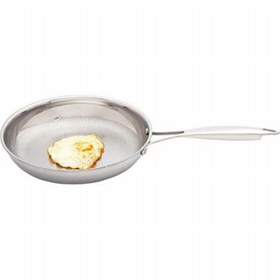 Chef's Secret 9-1/2" T304 Stainless Steel Non-Stick Fry **|**|** Prepare your meals initially with a low temperature, heat to 100 degree, then down to 70 degree C. Cook with peanut oil for best results. Features mirror finish exterior, 3-ply 18/8 stick-resistant textured surface and riveted cast handle. Measures 9-1/2" inner cooking area. Limited lifetime warranty
