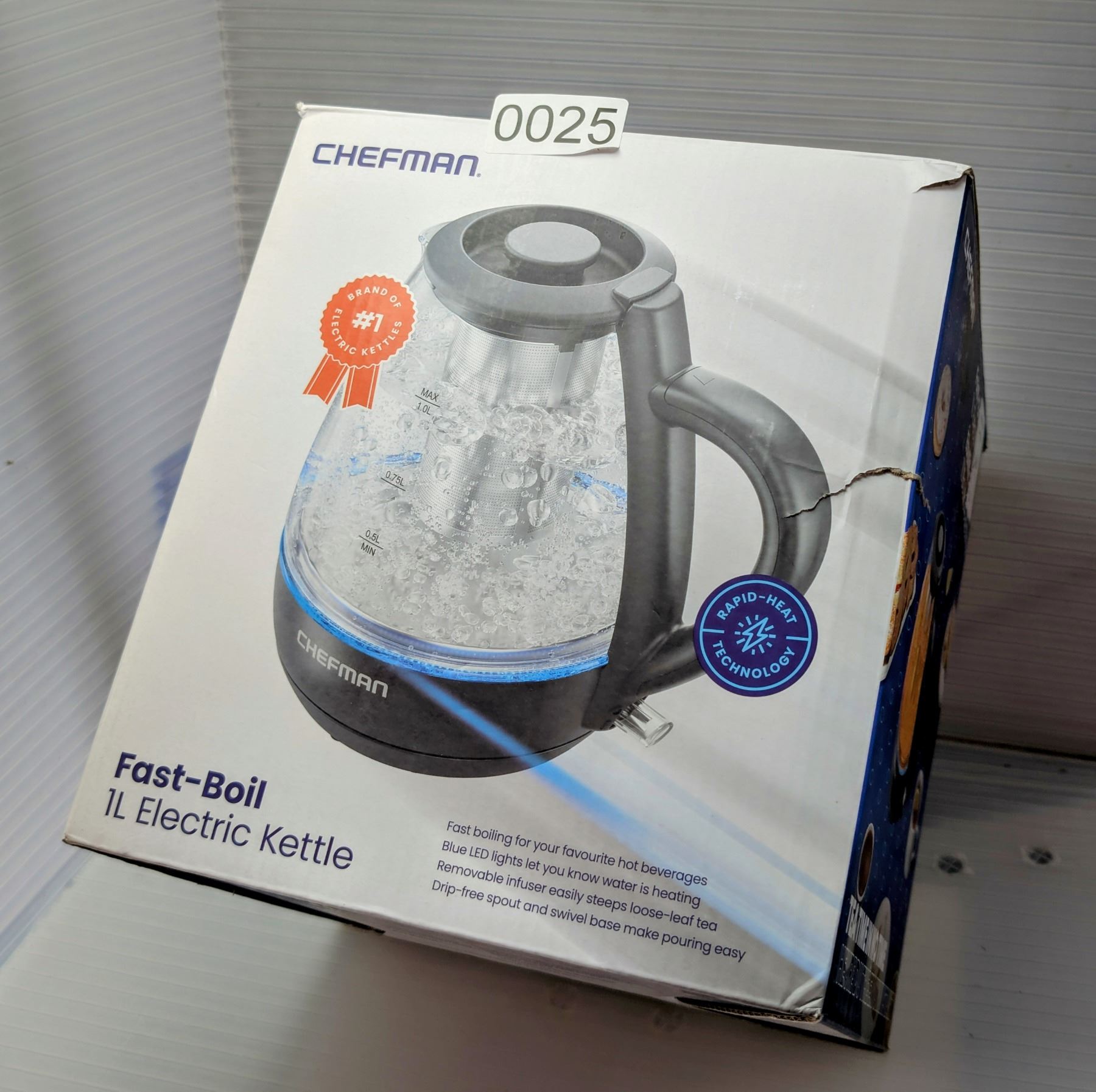Chefman fast-boil 1L electric kettle (tested working in box)