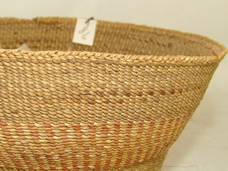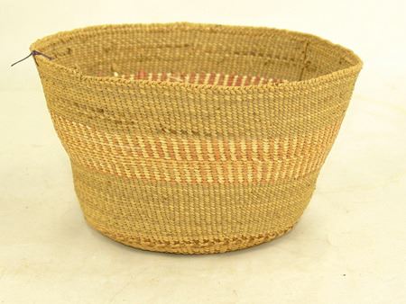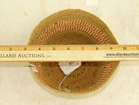 Early 1900s, Small fine weave flared bowl with single red and white design band. Very good condition. Ex. Judge Bonner Collection. 4" x 6"