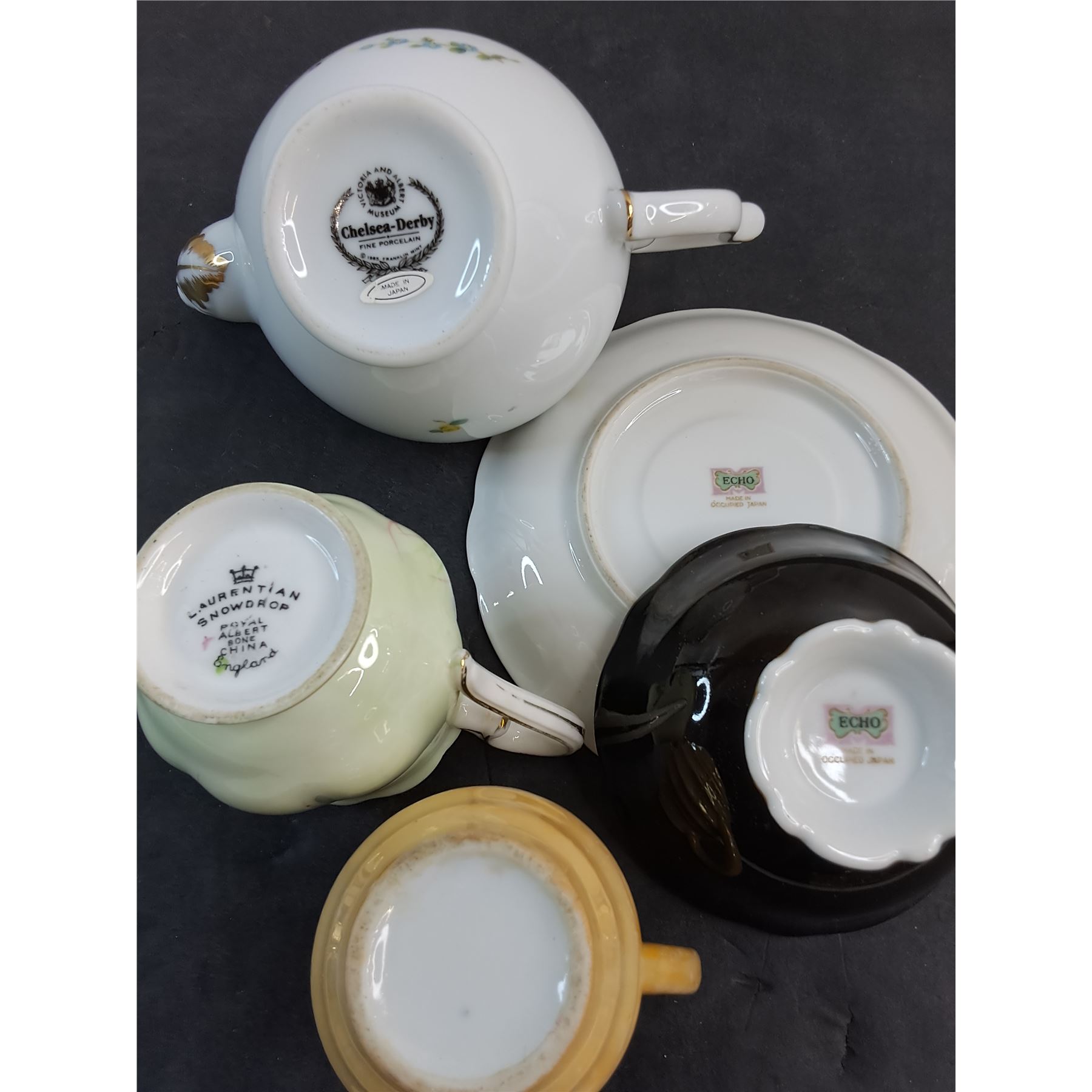 Chelsea Derby Teapot, Echo OJ Teacup & Saucer, Royal Albert Creamer