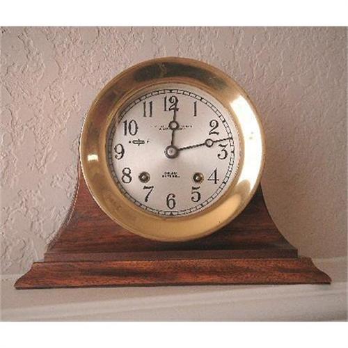 It has an 8 day mechanical key movement which rings with the sound of the traditional ship?s bells, striking on the hour and the half hour-with one bell for each half hour on a 4 hour watch at sea.