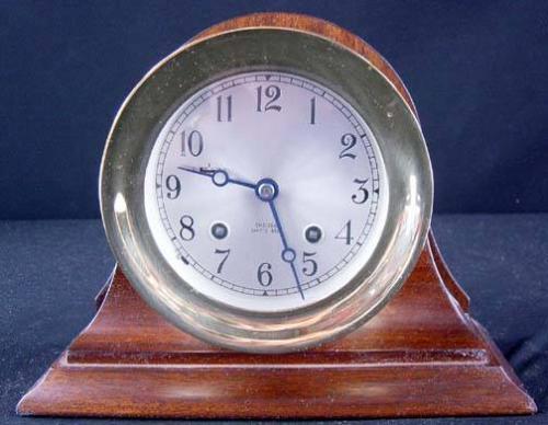 Chelsea Ships Clock, Brass on Wood Stand, 5.5" diameter