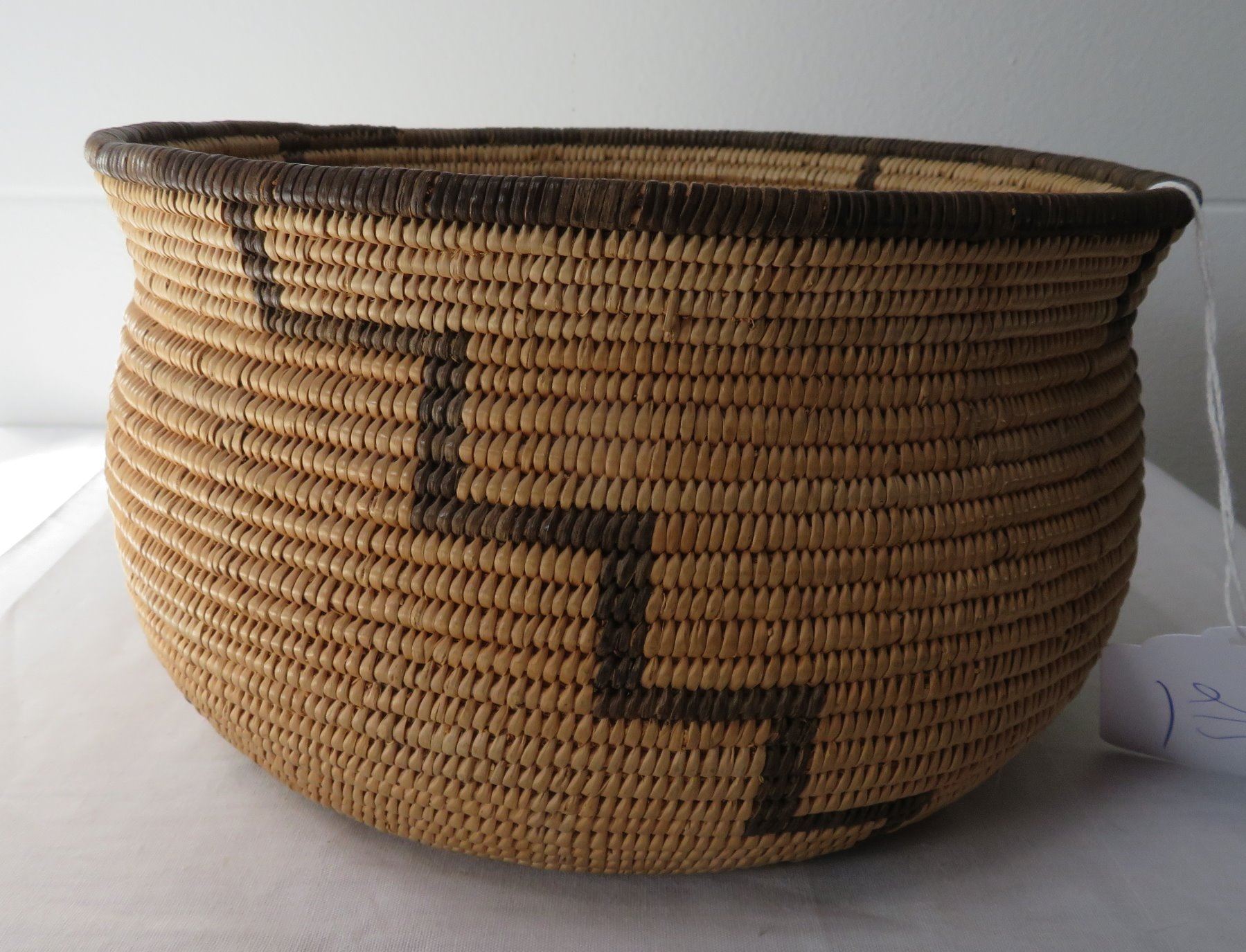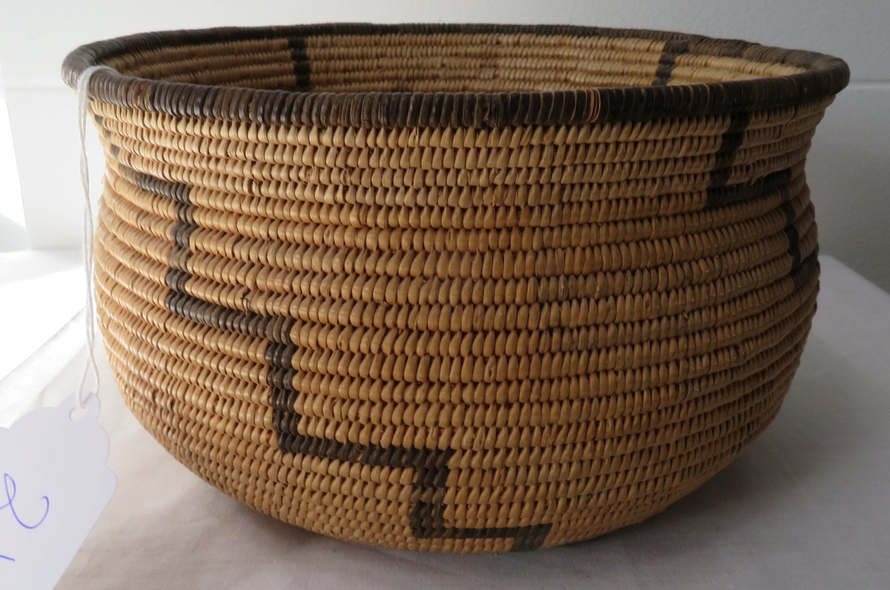 Chemehuevi Basket, c. 1920s. Made of willow and devil's claw, the item measures 8 1/4" x 8 1/4" x 4 3/4". Colorado River. Museum quality basket. Condition: Very good, see images. Shipping: $34.00 USA estimate only, w/insurance and signature, due to value.