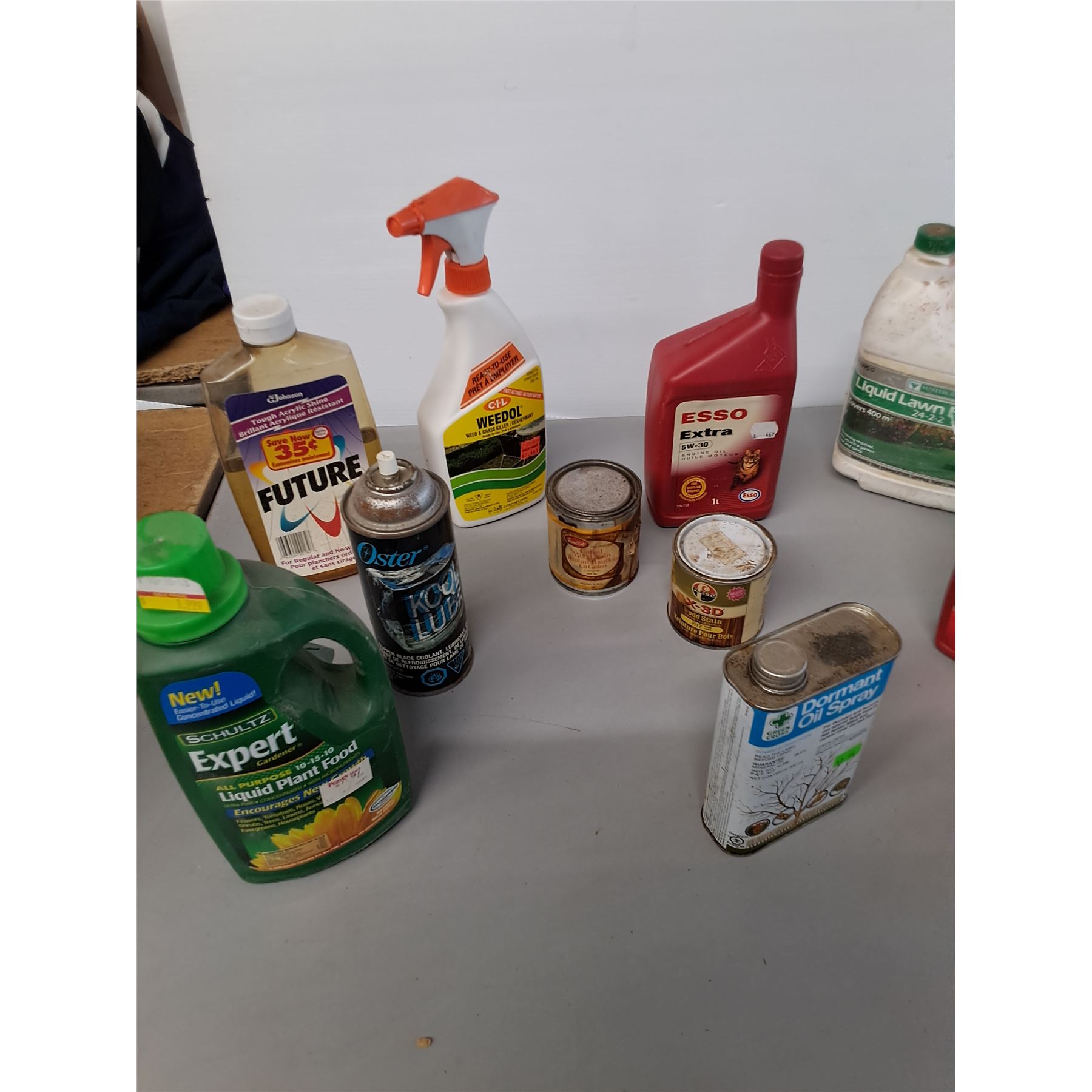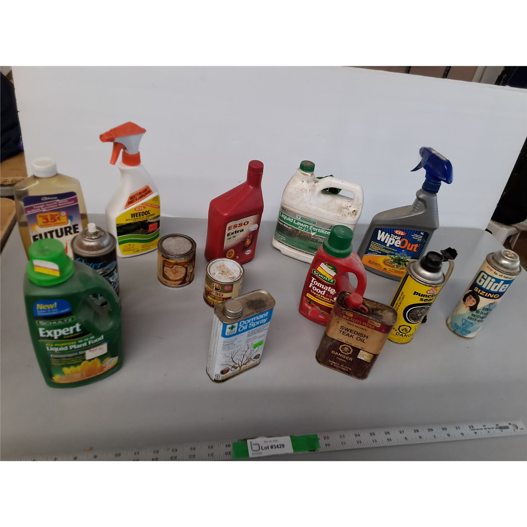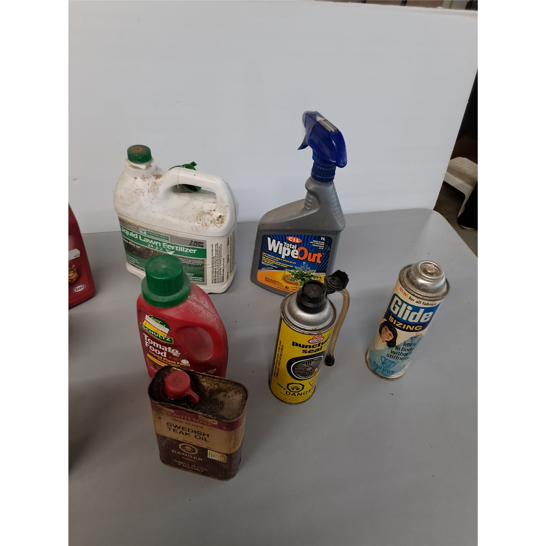 Chemicals Lot- Puncture Seal, Weedol, Teak Oil, Misc. Approx. 1/3 Full to Full, Cannot Ship