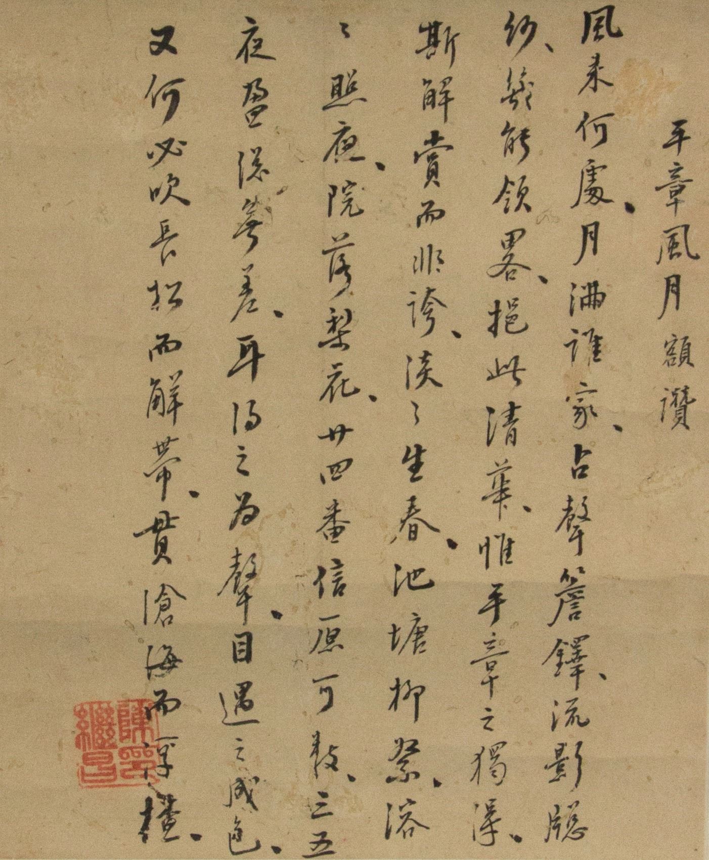 Chinese calligraphy in semi-cursive script; Chinese ink on paper roll; inscribed with Chen Jichang (1791-1849)'s seal; 23.5 cm x 20 cm