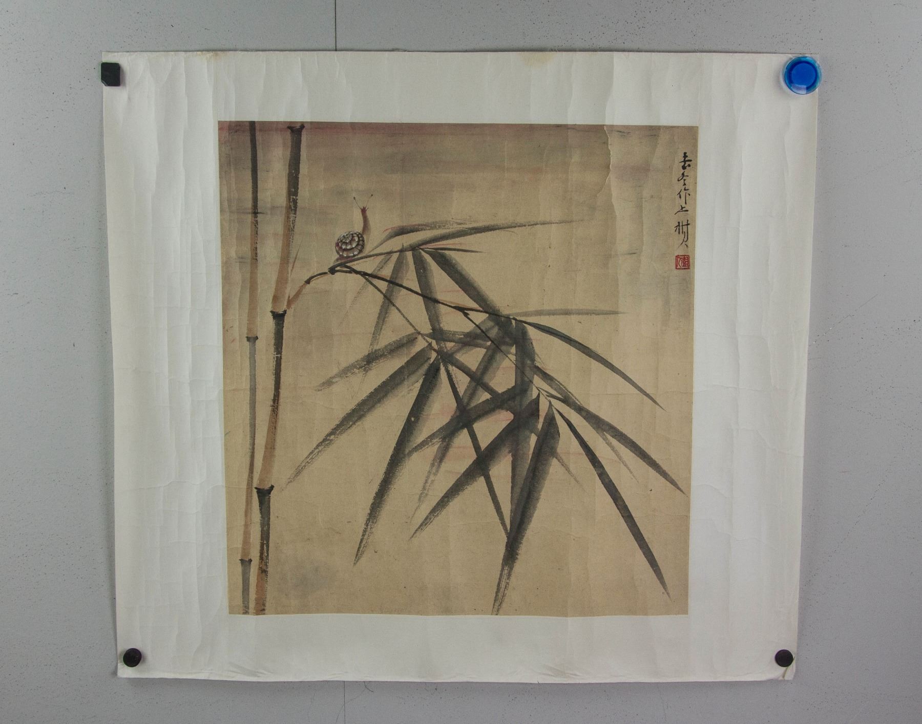Painting of bamboo and snail; Chinese ink and watercolour on paper roll; signed Chen Shuren (1884-1948); inscribed with 1 artist seal; 54 cm x 51 cm