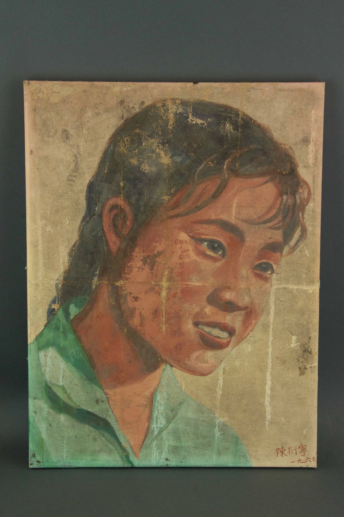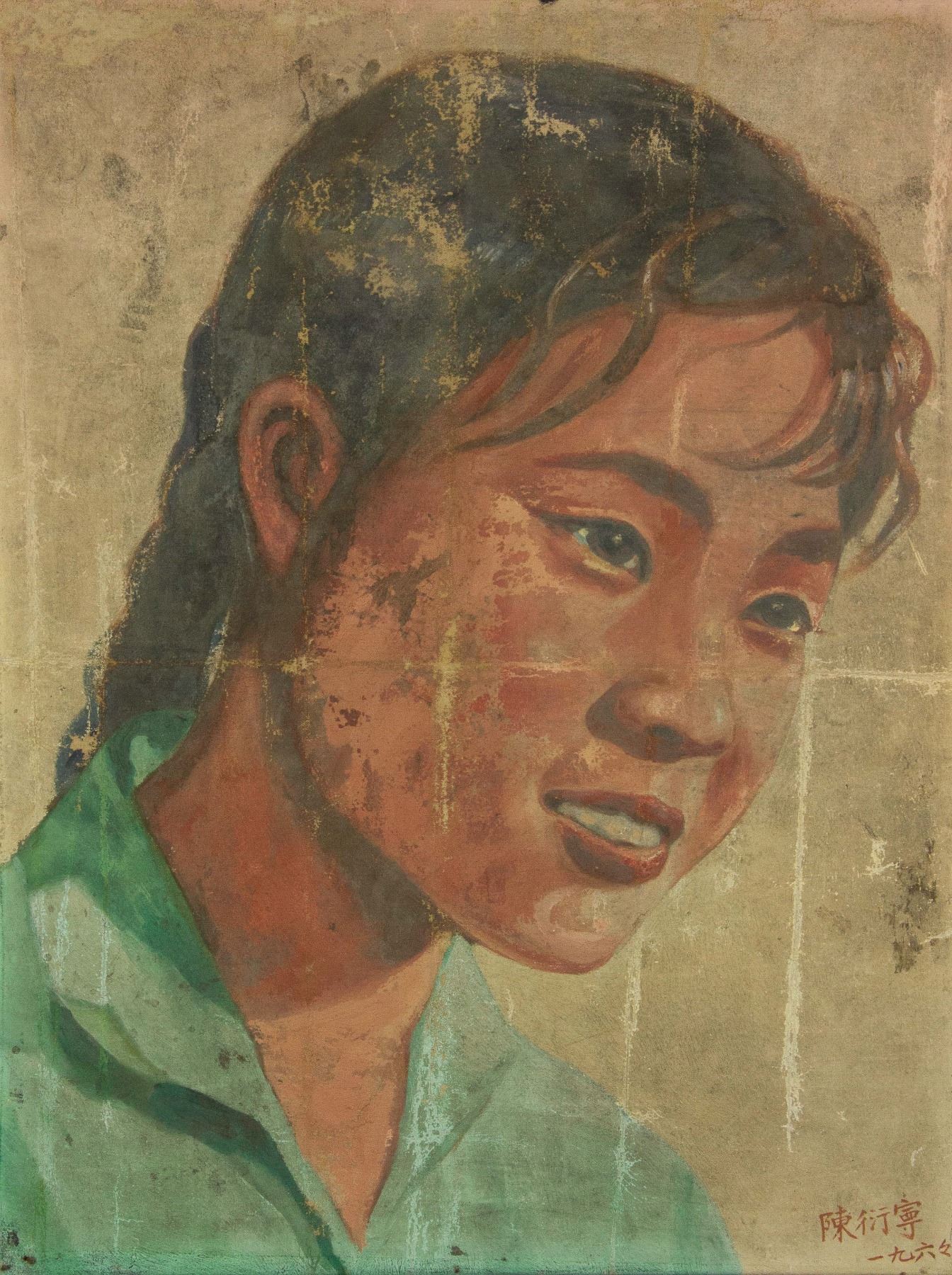 Portrait of a Chinese young lady; oil on canvas; signed Chen Yanning and dated 1962 on the lower right corner; 54 cm × 42 cm