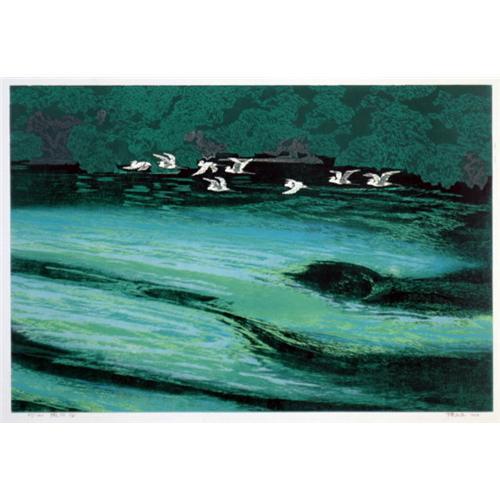Signed, Limited Edition: 52/100, 1989, 22.8 x 16.5. Retail Price: $3,000. Certificate of Authenticity. Chen Yuping is one of the most internationally famous Chinese artists alive today. He is a master artist of China's "Great Northern Wilderness School." Following in the tradition of the School's best-known representative, Hao Boyi, Chen is known for his powerful use of colors that seem to jump off his prints. In this sense, his work is reminiscent of Yunnan Schools' Red Earth style. However, Chen is from Northern China, which has a very different print tradition. Thematically, you will frequently find sweeping landscapes, wild animals, haunting skies, sublime evenings, and the ambience of an early morning mist. Chen, like his fellow members of the Great Northern Wilderness School, depicts the "waistelands," so-called, that reach from Northern China to the interior of Russian Siberia. Contrary to the common image of these lands as cold an barren, Chen reveals the sublime beauty of this isolated wilderness. Here just some of his many achievements. 1974 was selected in the 5th National Art Exhibition and was published on this exhibition catalogue. In the same year, this print was exhibited in the "Chinese modern artworks show" organized by UNESCO. 1978 was selected in the 6th National Art Exhibition; 1979 was selected in the 6th National Art Exhibition; 1982 was selected in the 8th National Print Exhibition; 1984 was selected in the 7th National Print Exhibition; 1990 "September ...