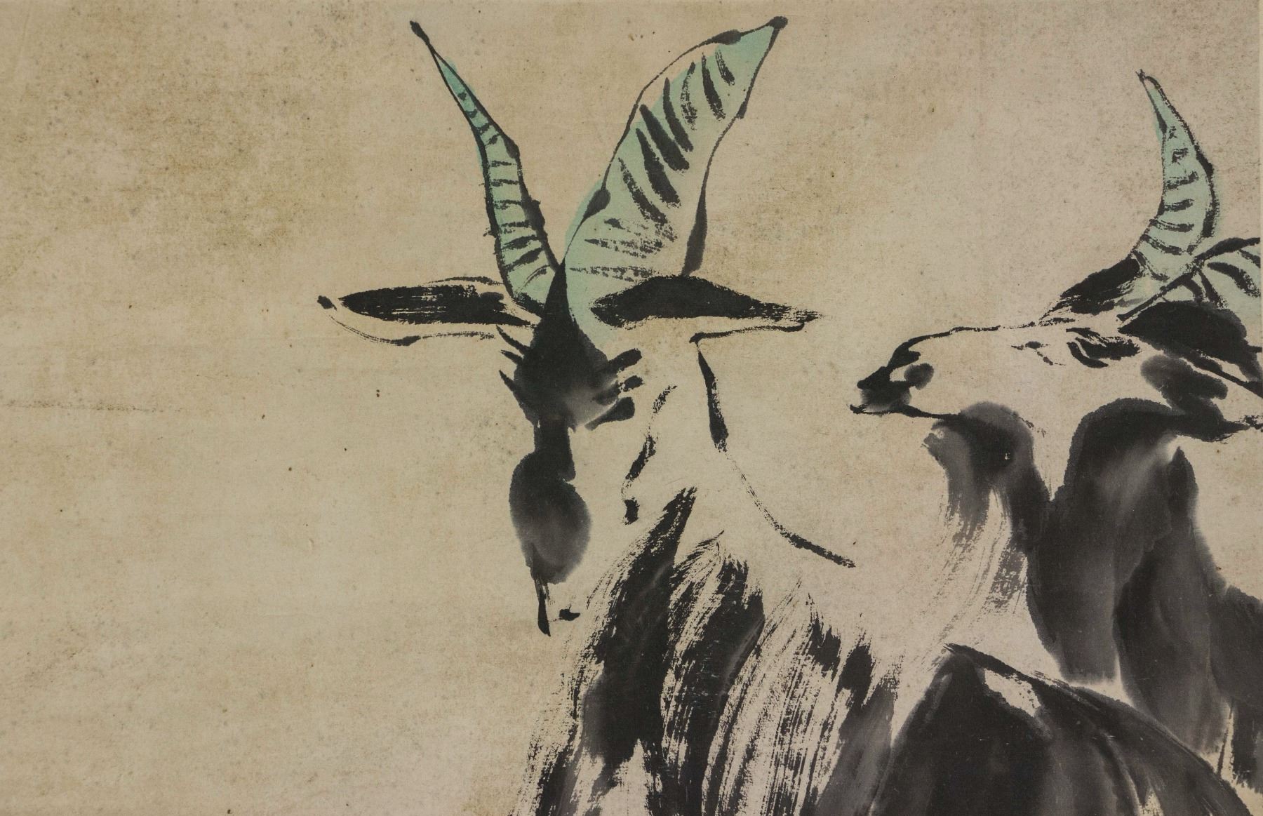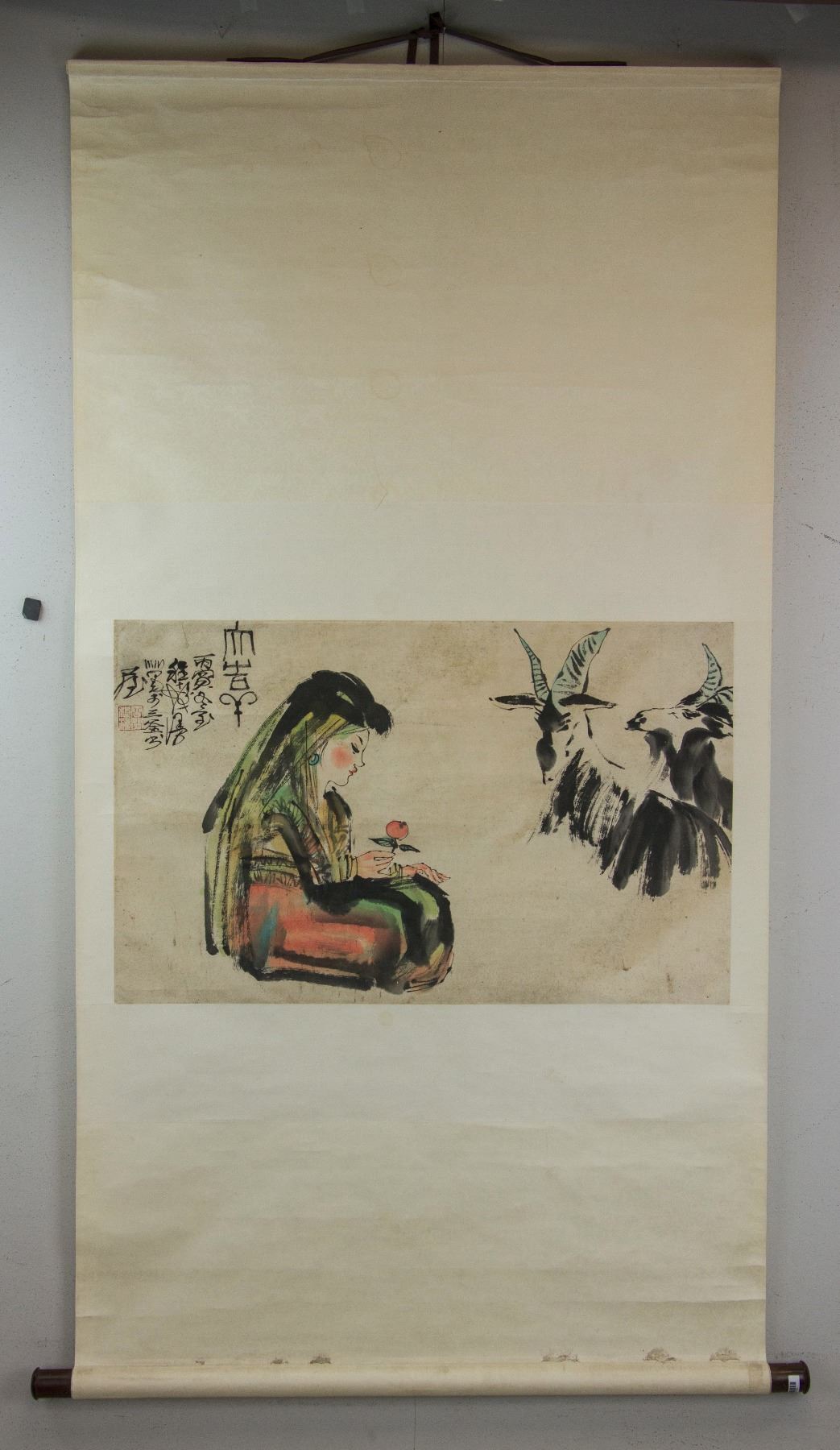 Uyghur girl and goats; Chinese ink and watercolour on paper; hanging scroll; signed Cheng Shifa (1927-2001); inscribed with 1 artist seal; 45 cm x 73 cm
