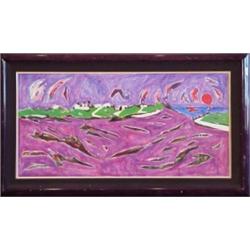 PURPLE LANDSCAPE, acrylic painting on canvas, 24 x 48", signed?, framed. $400/600