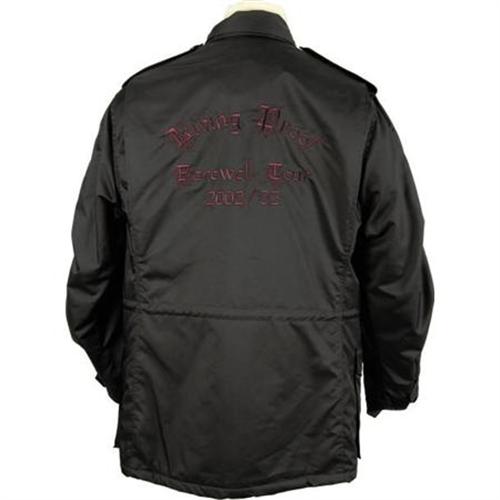 <B>Cher Living Proof / Farewell Tour Jacket.</B></I> Cher's Living Proof Tour was more famously known as her Farewell Tour, and boasted a staggering 325 concerts, lasting from June of 2002 to April of 2005. This jacket, from the '02-'03 leg of the tour, is an insulated woman's size large and is in Excellent condition -- with the tour's logo embroidered on the back and a Cher insignia along the left sleeve.<BR><BR><b>Shipping:</b> Clothing, Costumes & Jerseys (<a target="_blank" href="http://www.heritageauctions.com/common/shipping.php">view shipping information</a>)