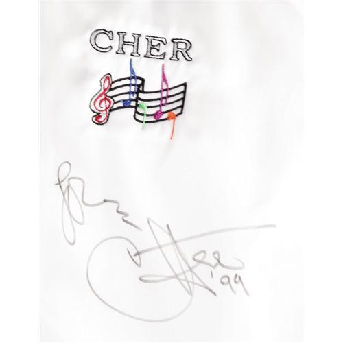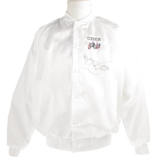 <B>Cher Signed Tour Jacket.</B></I> White nylon jacket, size large, with large Cher logo on back and smaller logo on left breast, inscribed "Love, Cher '99" in black marker. In Excellent condition.<I>From the Robert Johnson Memorabilia Collection.</B></I><BR><BR><b>Shipping:</b> Clothing, Costumes & Jerseys (<a target="_blank" href="http://www.heritageauctions.com/common/shipping.php">view shipping information</a>) <BR><BR><B>Important no