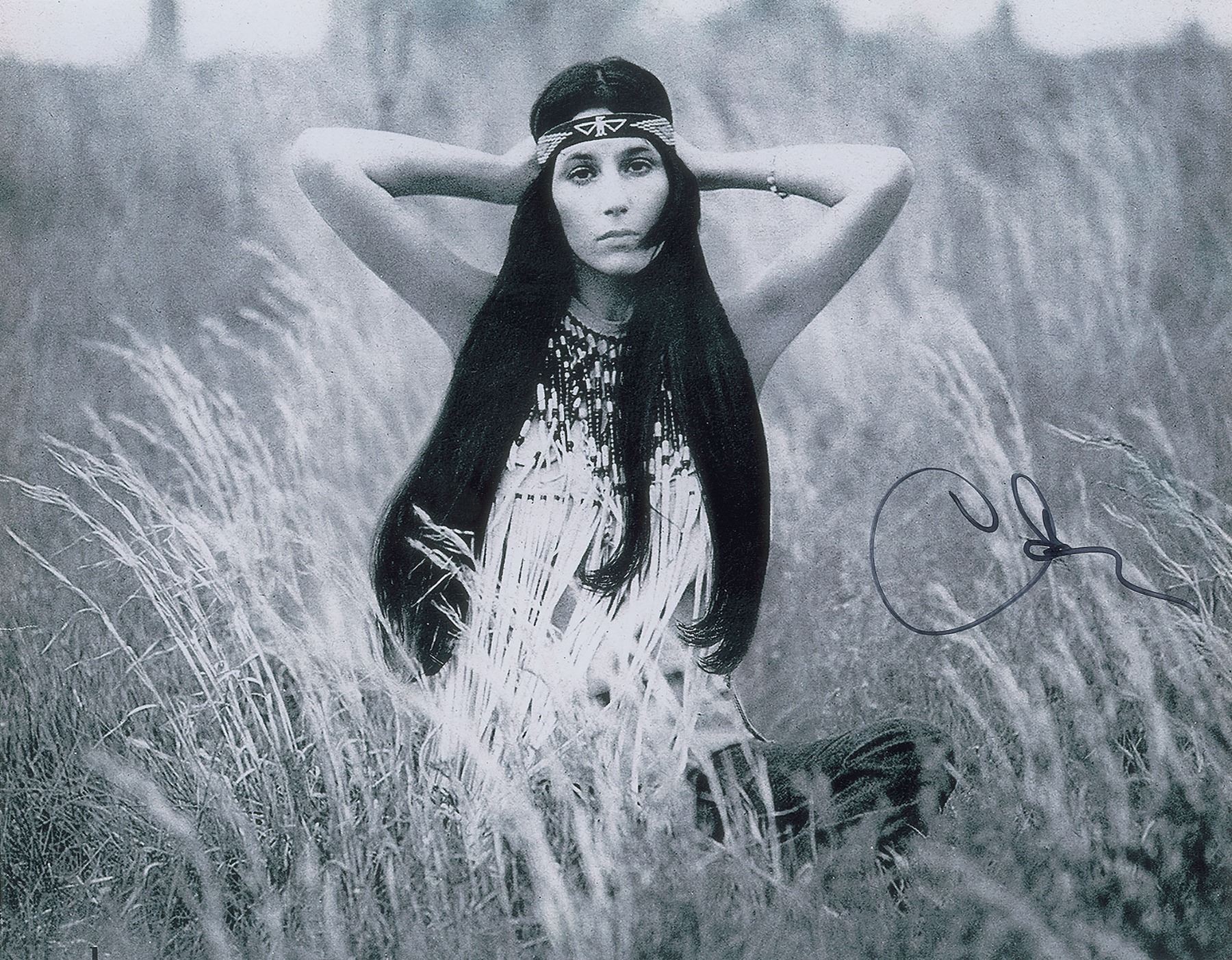 Satin-finish 14 x 11 photo of Cher posing in a meadow, signed in black felt tip. In very fine condition, with a Beckett label affixed to the reverse. Accompanied by a certificate of authenticity from Beckett Authentication Services.