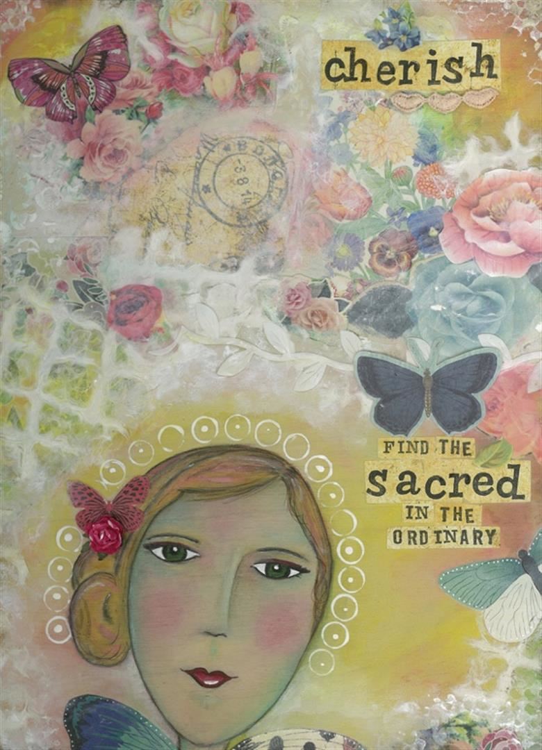 Mixed media on wood panel by Adonna. 9 x 12. Cherish - Find the sacred in the Ordinary.
